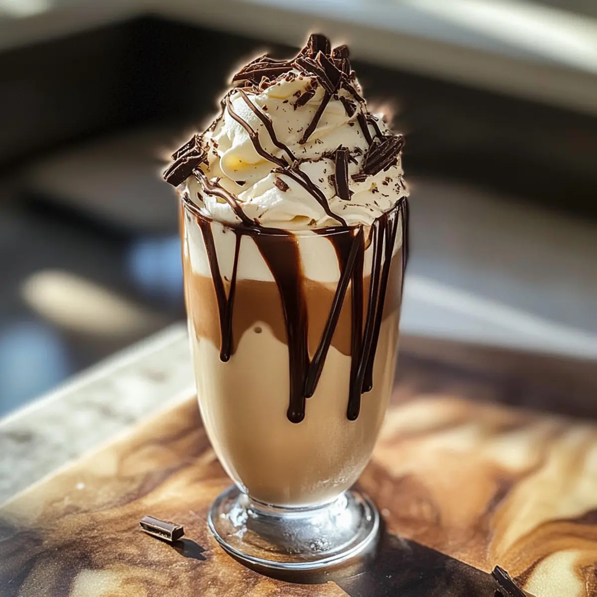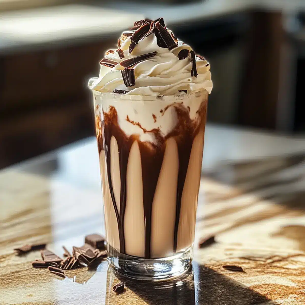 Präsentationstipps: Verwende hochwertigen Schokoladensirup, um eine ansprechende Swirl-Optik im Glas zu erzielen. Das macht den Drink noch verlockender.