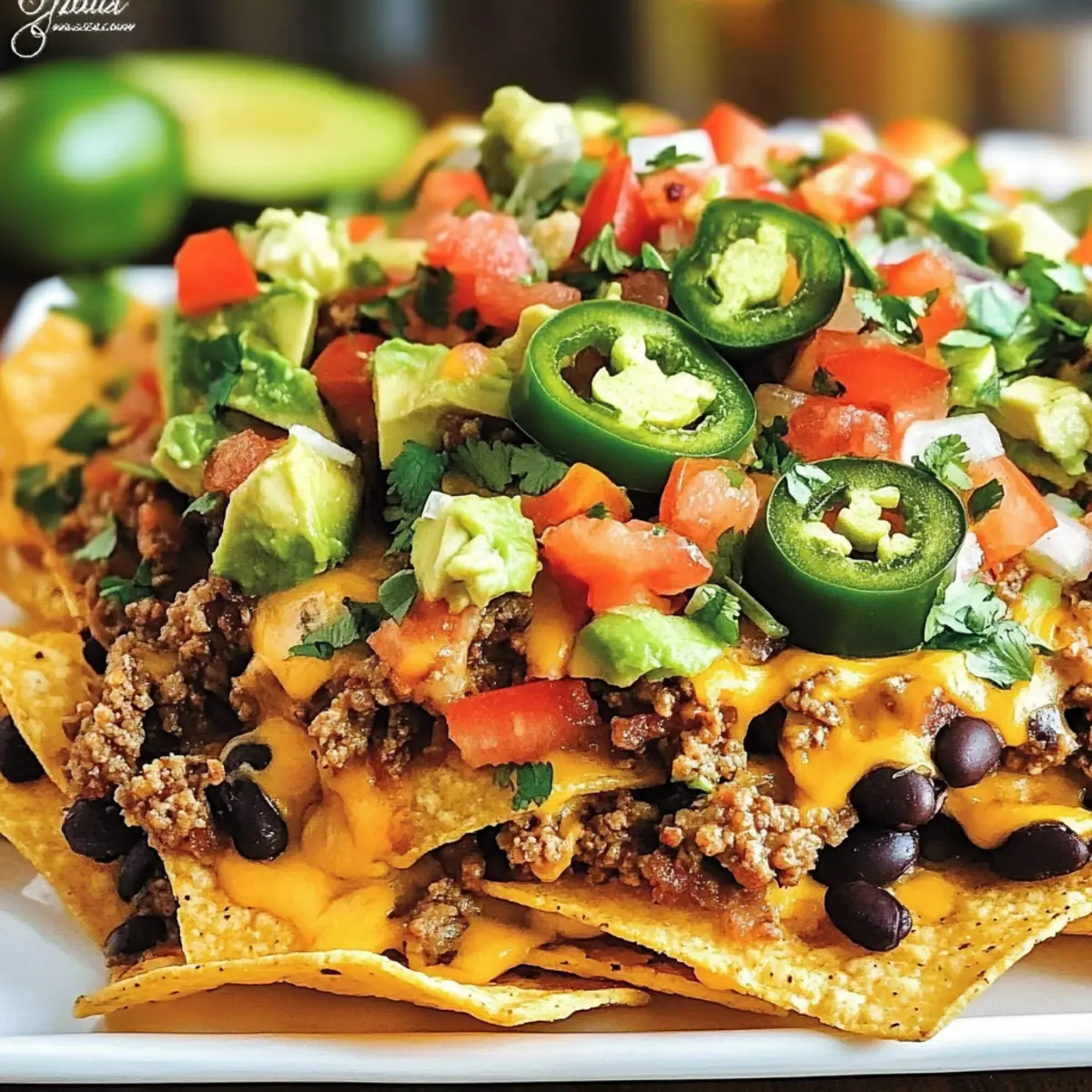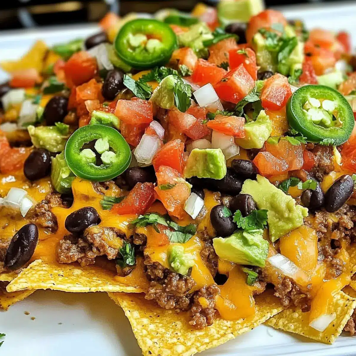 Egal, ob du ein leidenschaftlicher Hobbykoch bist oder einfach nur den Stress einer hektischen Woche reduzieren möchtest, diese Beladenen Nachos sind ideal für die Vorbereitung im Voraus. Du kannst das Hamburger Fleisch mit Taco-Gewürz bis zu 3 Tage im Kühlschrank marinieren und bereitstellen. Auch die Refried Beans und die geschnittenen Gemüse wie grüne Zwiebeln und Jalapeños lassen sich gut bis zu 2 Tage zuvor vorbereiten. Um die Qualität zu erhalten, lagere die einzelnen Komponenten in luftdichten Behältern im Kühlschrank. Wenn es Zeit ist, die Beladenen Nachos zu servieren, schichte einfach die vorbereiteten Zutaten auf Tortilla Chips und backe sie im vorgeheizten Ofen für etwa 10 Minuten. So hast du ruckzuck ein köstliches Gericht, das trotzdem frisch und lecker bleibt!