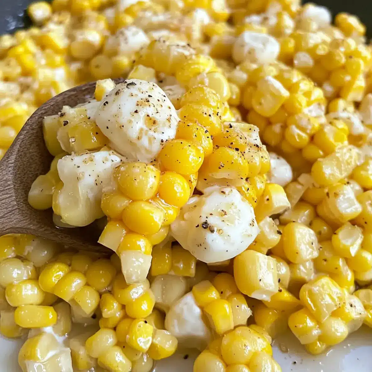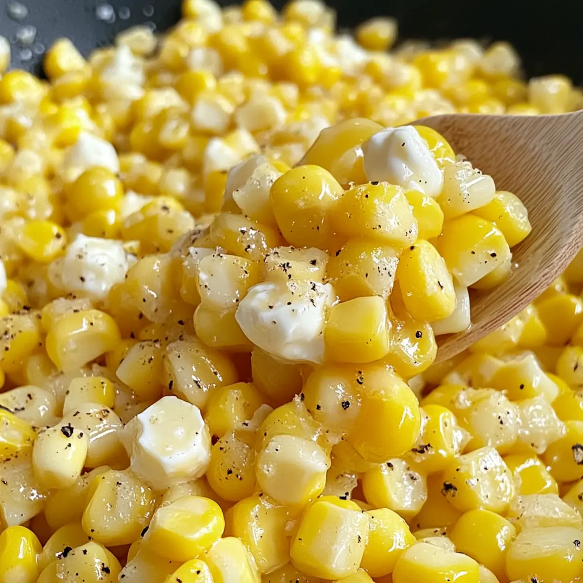 Sobald der Mais erhitzt ist, füge den Frischkäse, Salz und Pfeffer hinzu. Rühre alles gut um, bis der Frischkäse schmilzt und gleichmäßig im Mais verteilt ist – dies dauert etwa 3-5 Minuten. Die Mischung wird jetzt cremig und aromatisch, was deine Butterpfanne Mais zu einem echten Genuss macht.