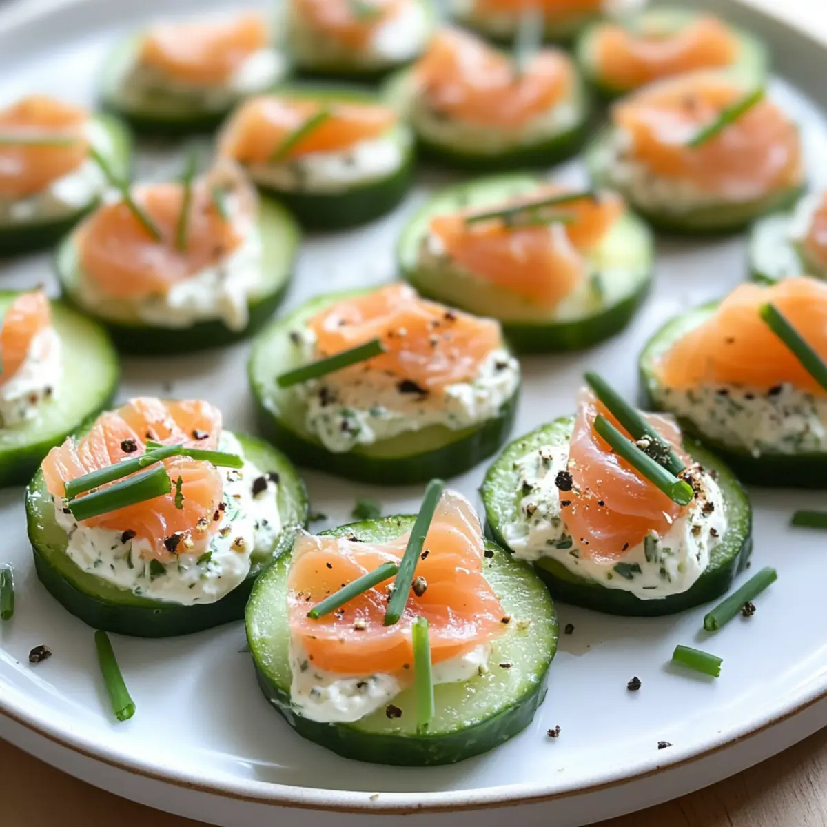 Räucherlachs-Häppchen auf Gurken für den Genuss