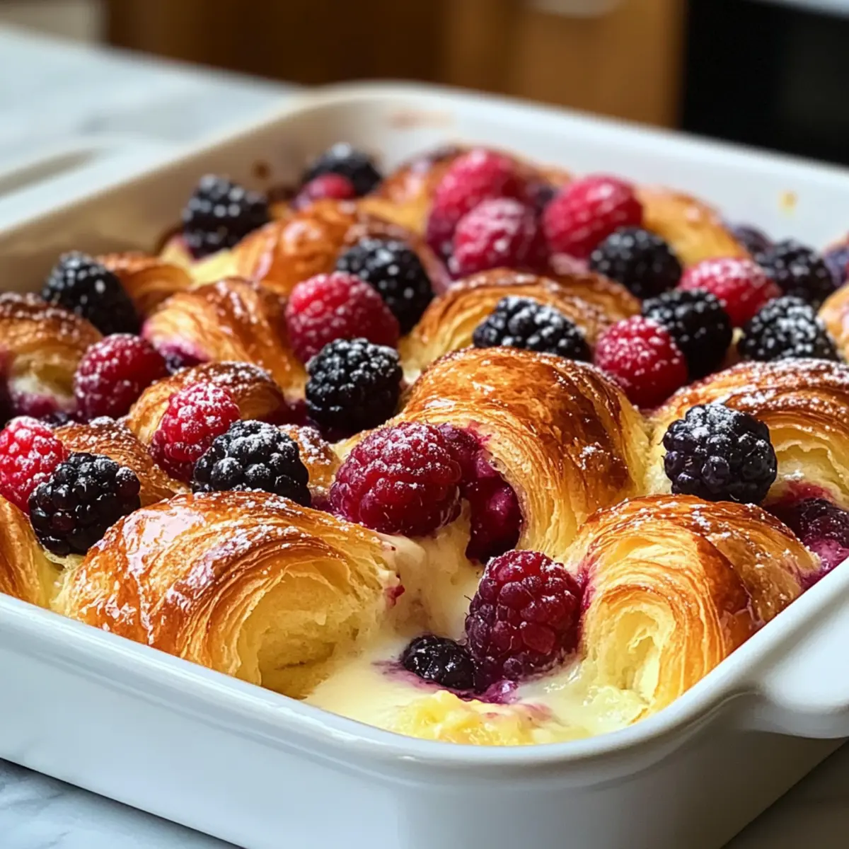 Frühstücksauflauf mit Beeren und Croissants
