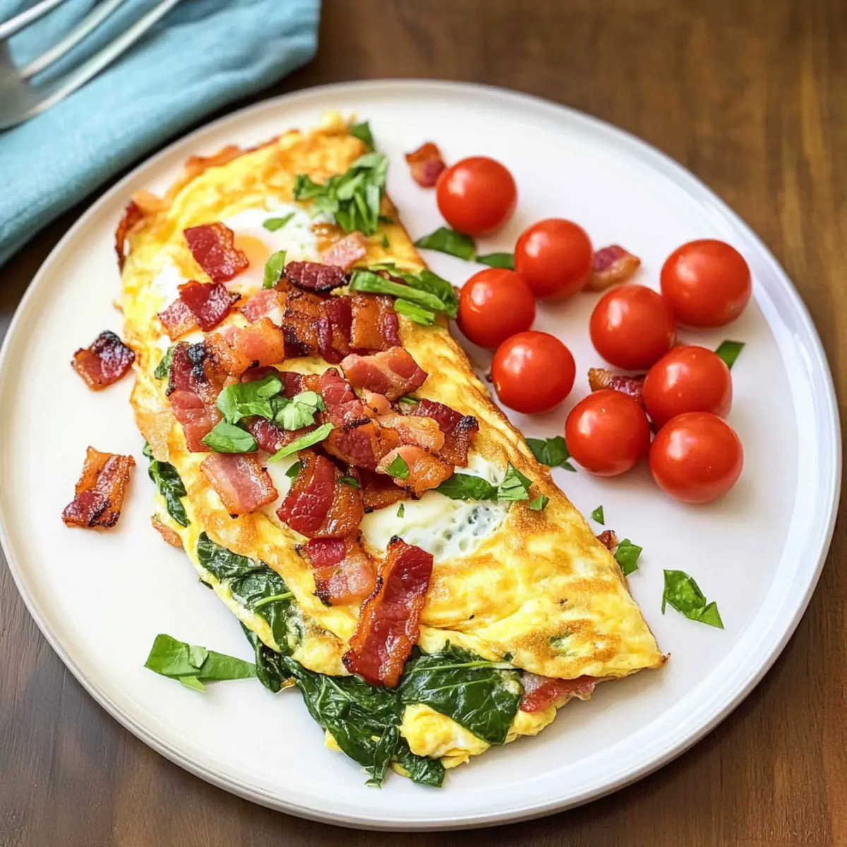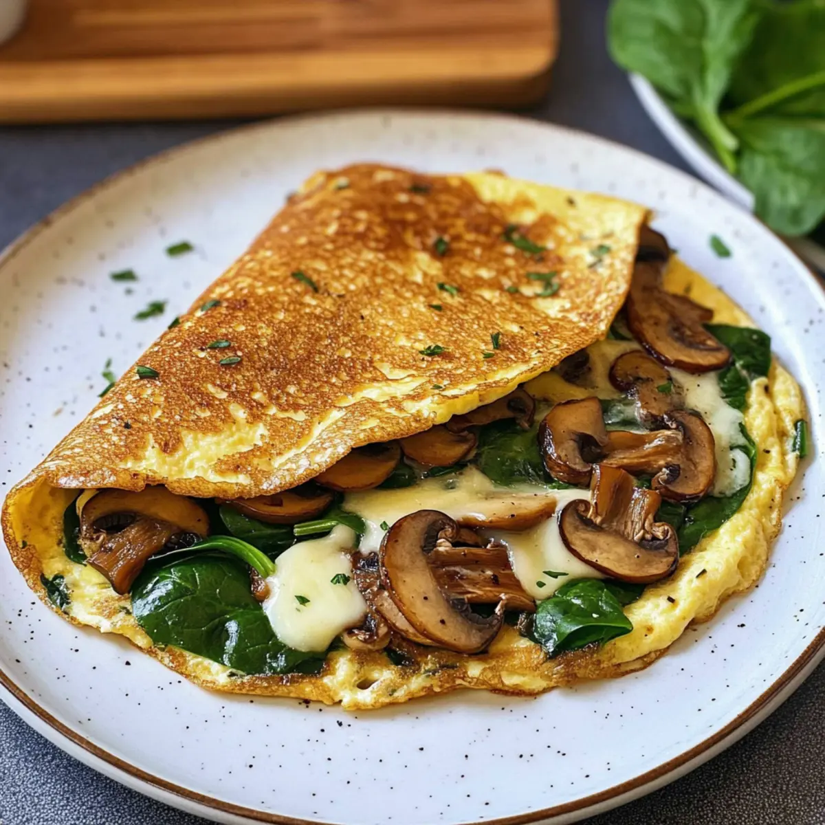 Spinat und Pilze Omelette für ein schnelles Frühstück