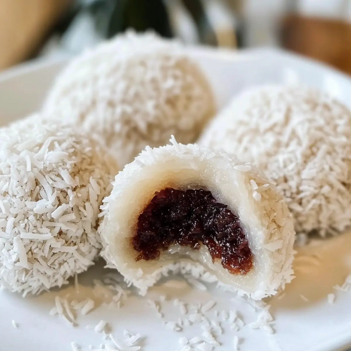 Kokos-Mochi mit roter Bohnenfüllung selber machen