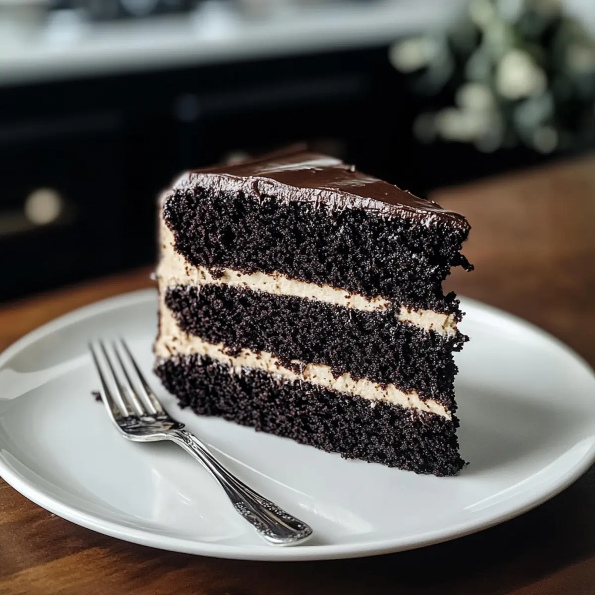 Dunkler Schokoladenkuchen mit Espresso-Creme
