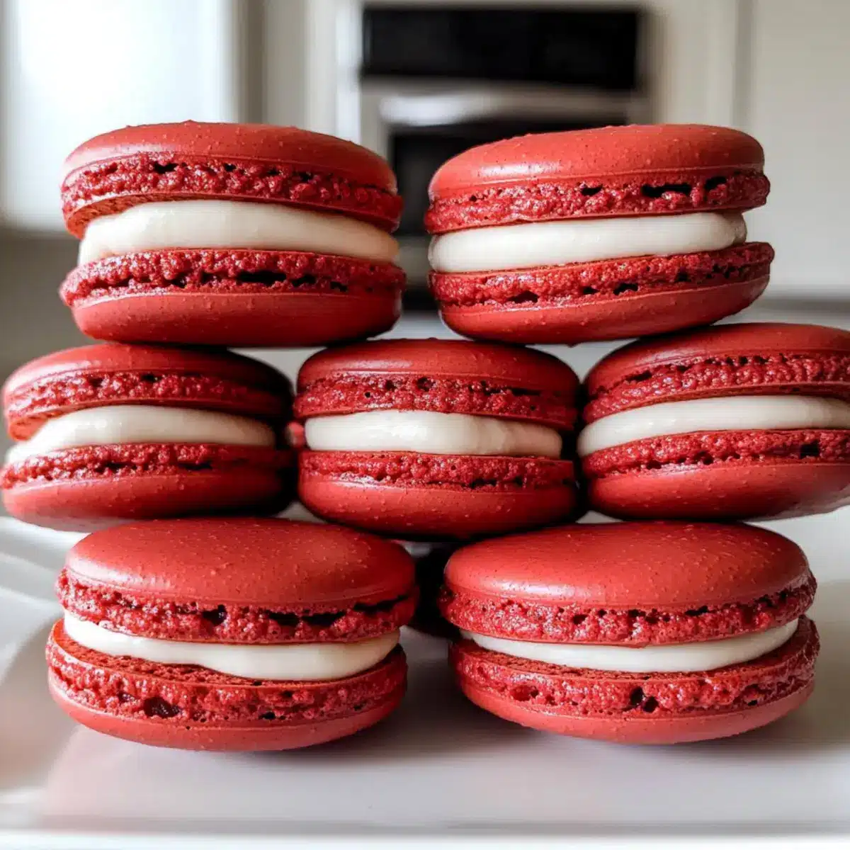 Rote Samt Macarons mit cremiger Füllung