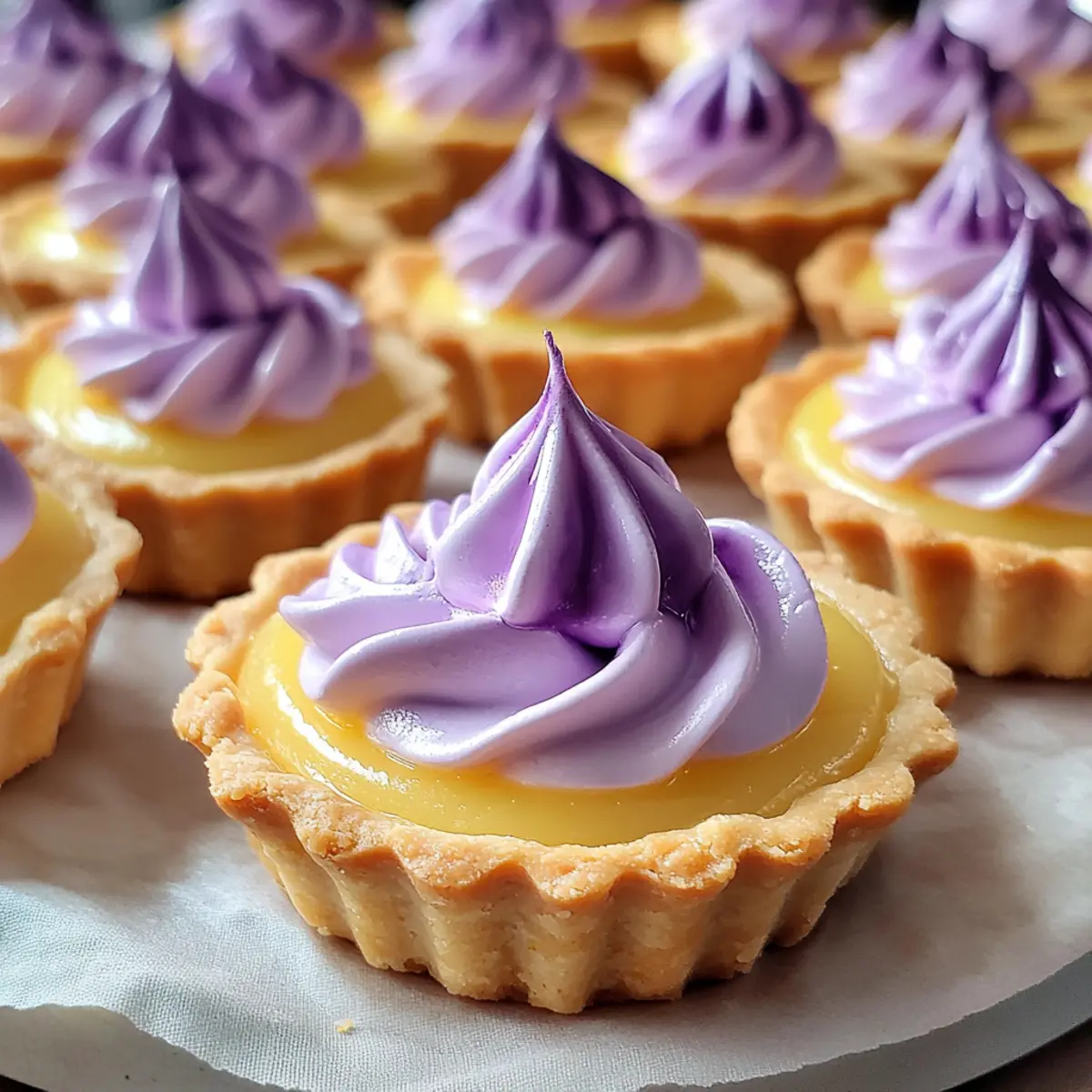 Mini Zitronentarte mit lilafarbener Meringue