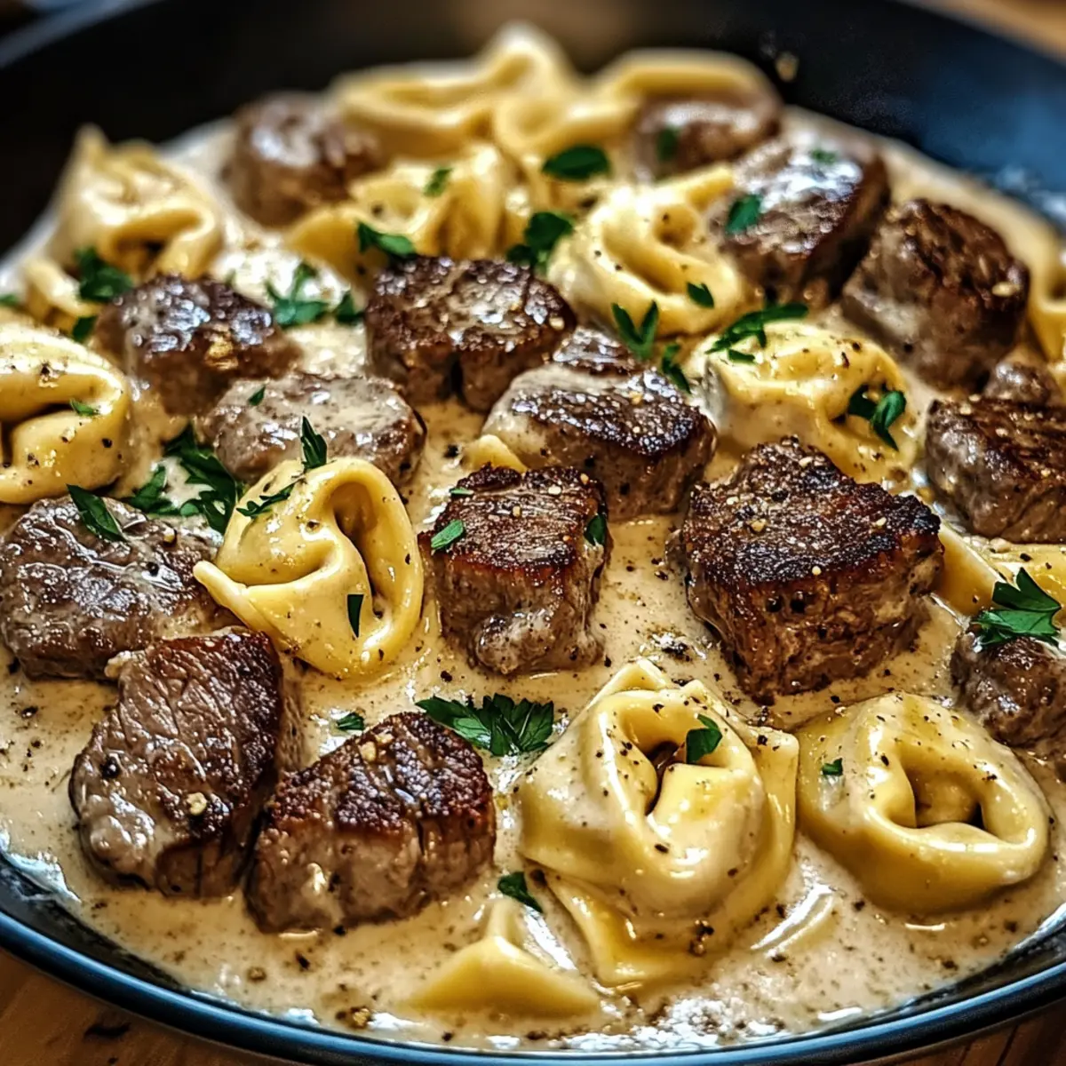 Knoblauch Steak Tortellini in cremiger Sauce