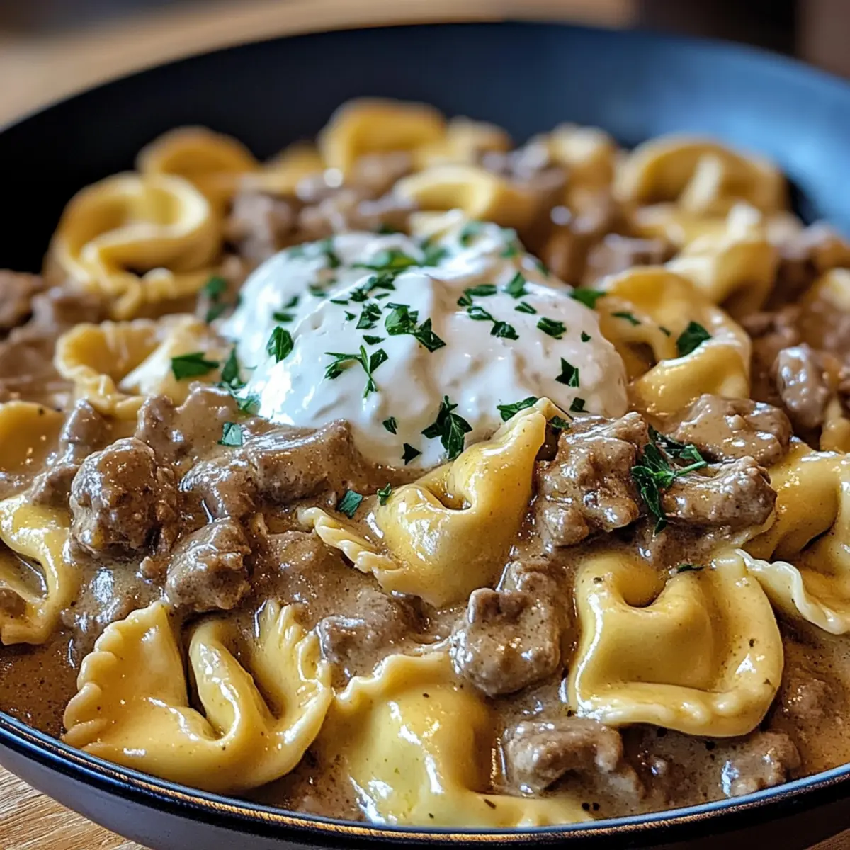 Schnelle Rinderstroganoff-Tortellini für die ganze Familie