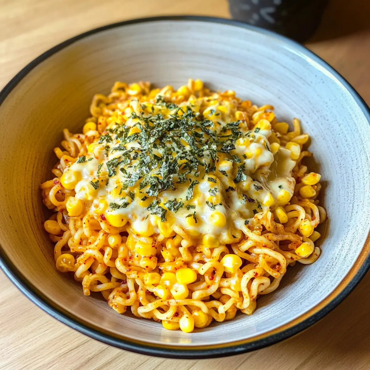 Würzige Nudeln mit koreanischem Maiskäse schnell zubereitet
