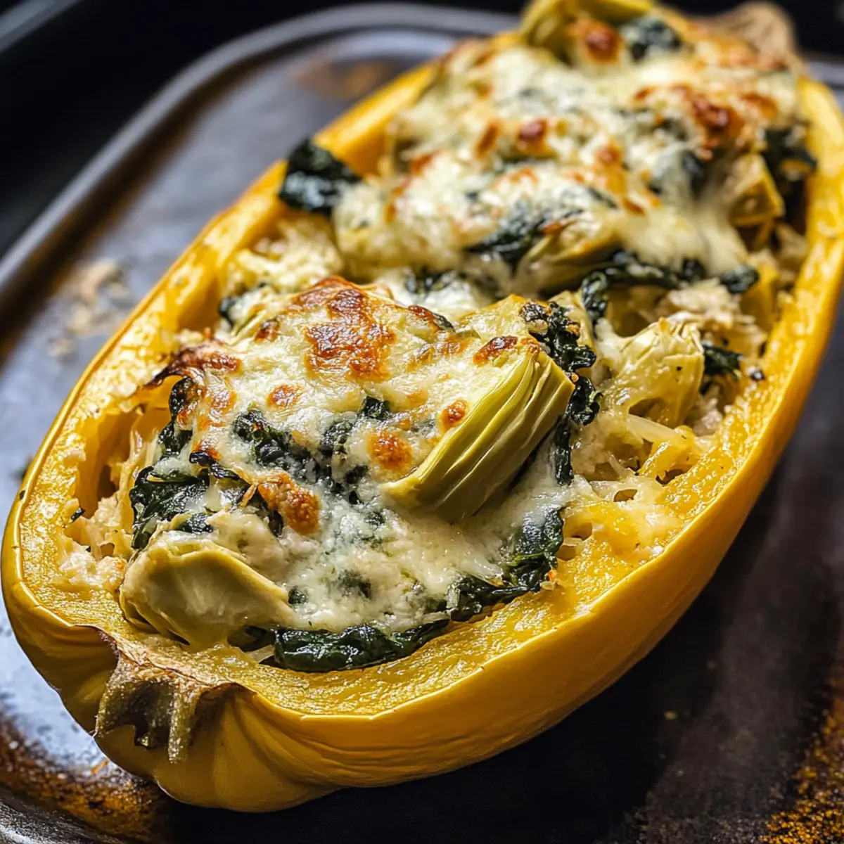 Spinat und Artischocke in Spaghetti-Kürbis gefüllt