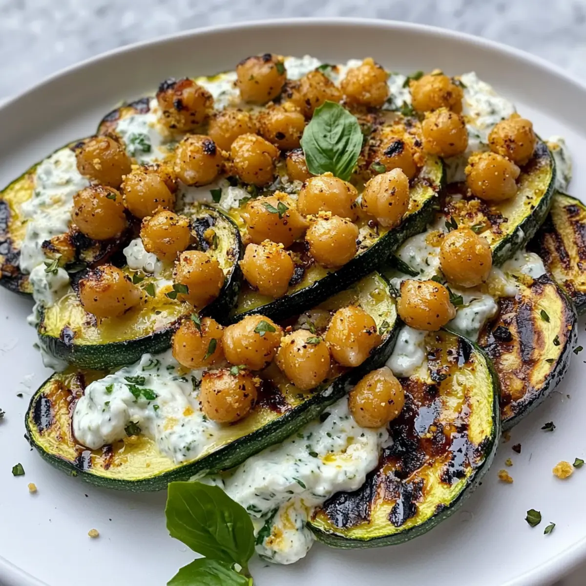 Zitronen-gegrillte Zucchini mit Kichererbsen