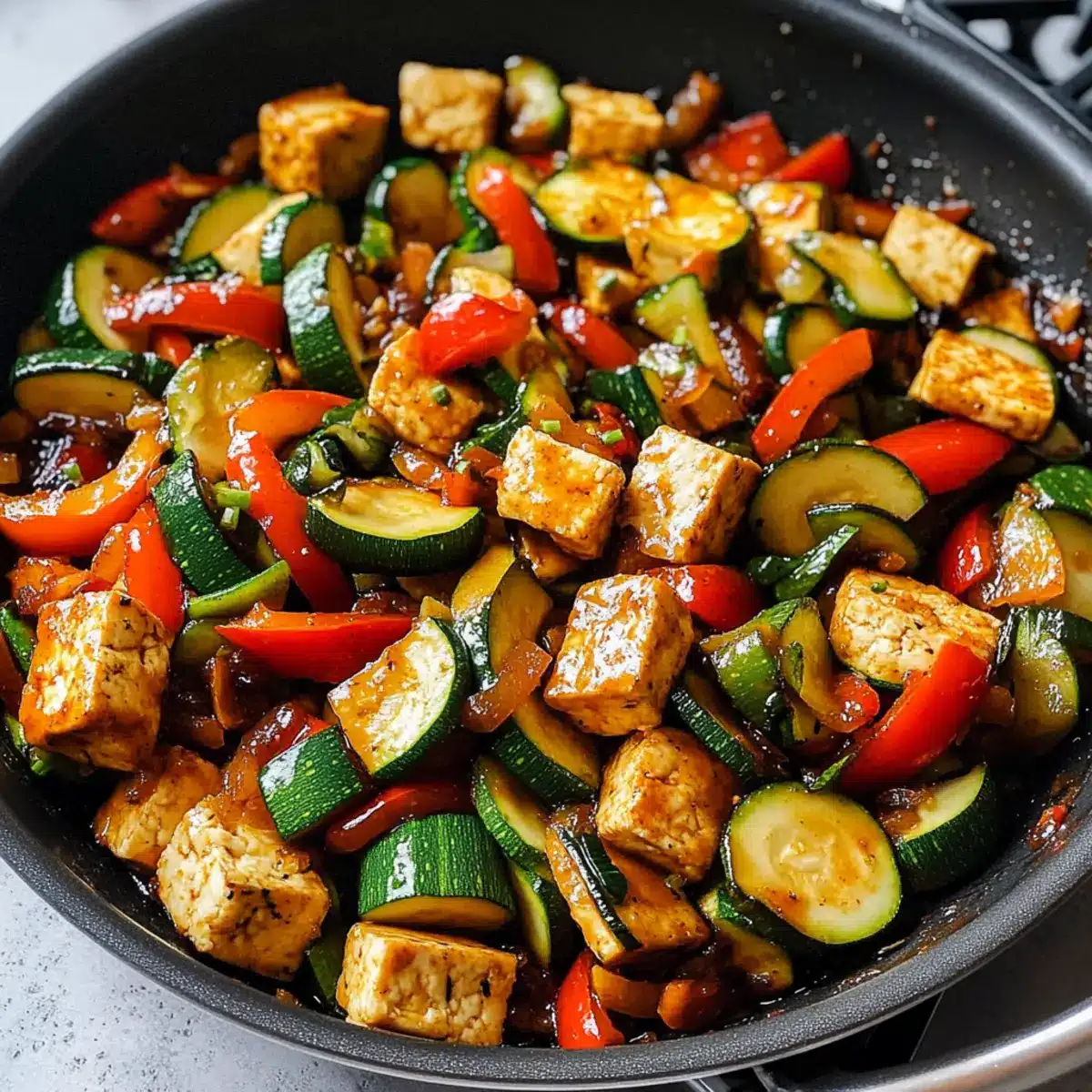 Zucchini Pfanne mit Tofu für gesunde Abende