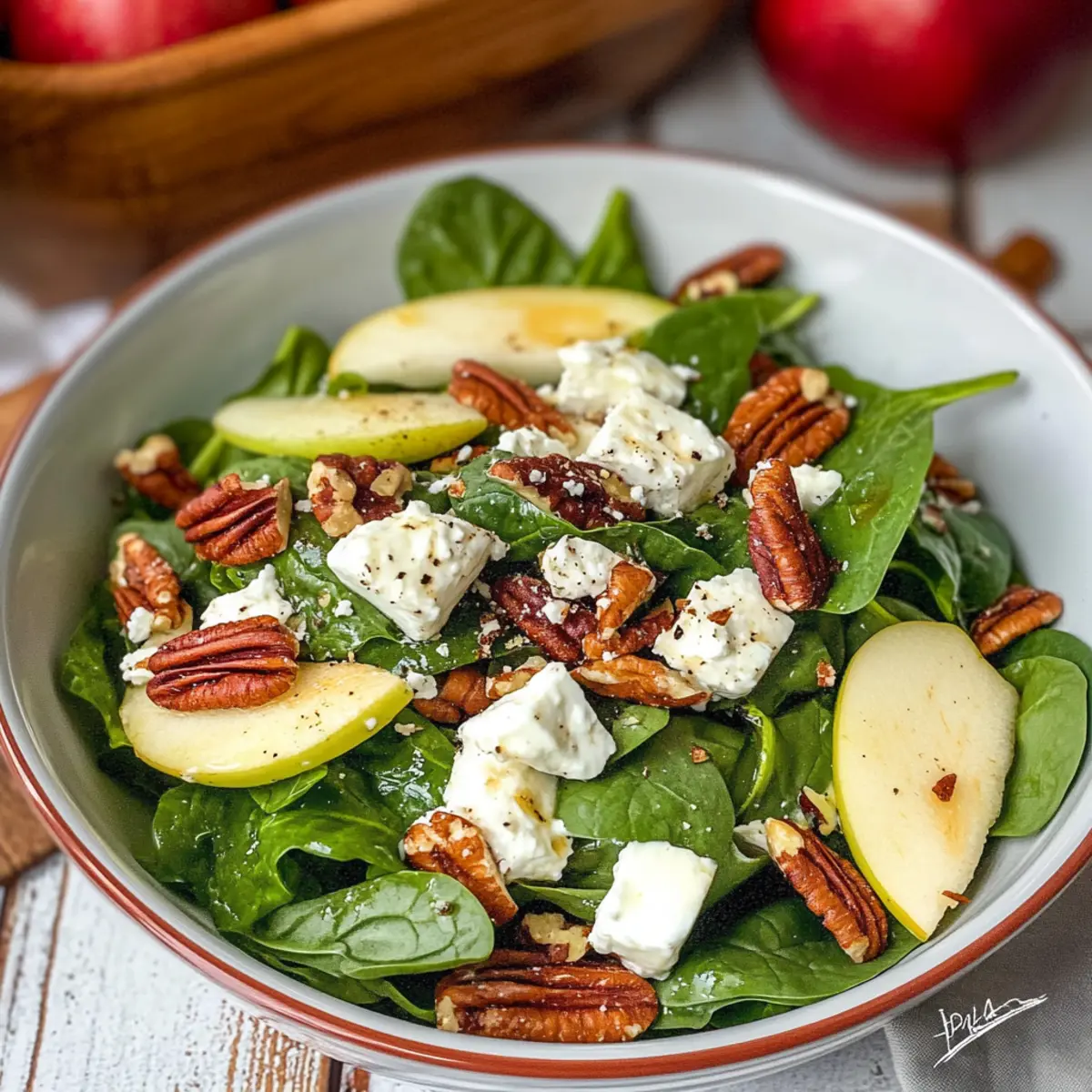 Frischer Spinat-Salat mit Äpfeln und Feta