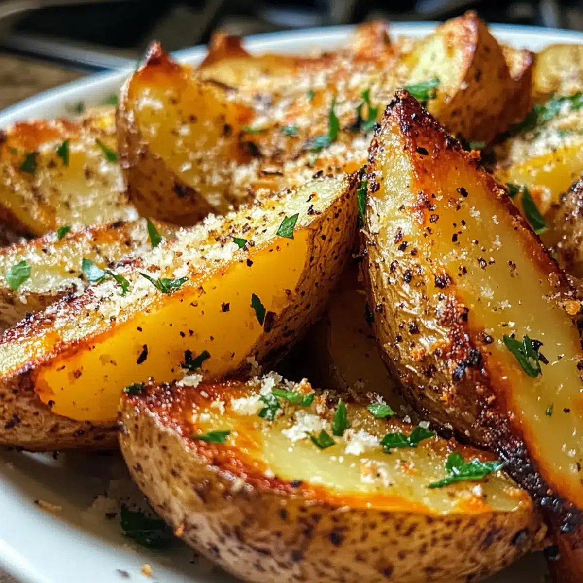 Kartoffelspalten mit Knoblauch und Parmesan frisch gebacken