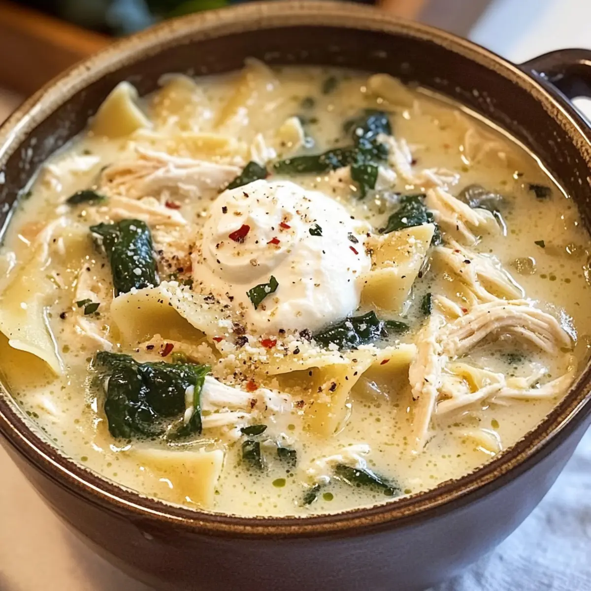 Weißes Hühnchen-Lasagna-Suppe für gemütliche Abende