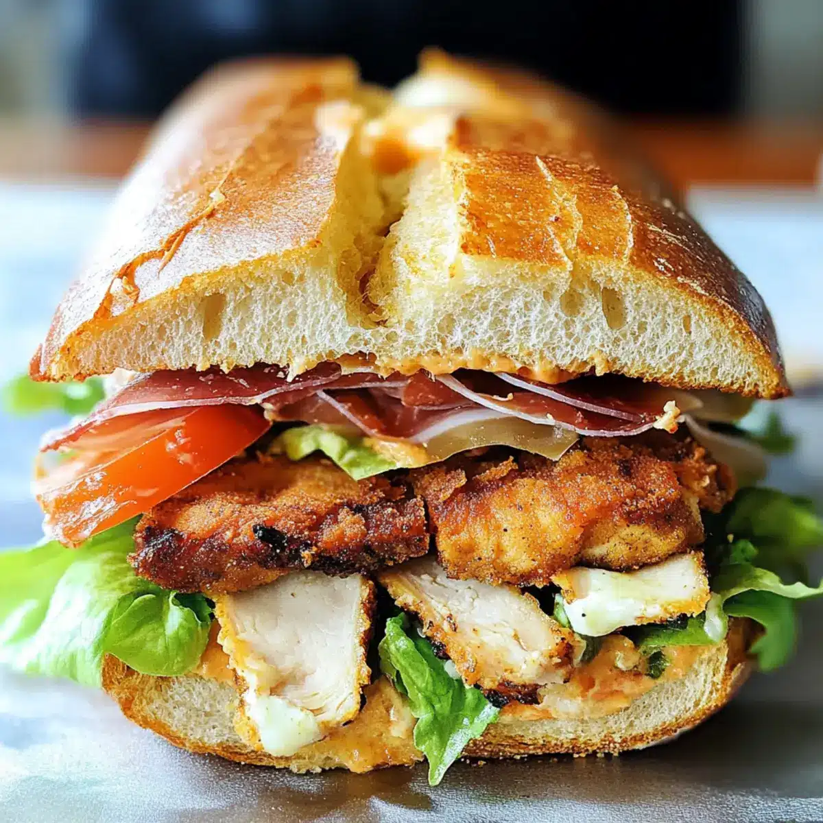 Wenn ich an ein schnelles, aber köstliches Abendessen denke, fällt mir sofort das italienische Ciabatta-Sandwich mit knusprigem Hähnchen und Prosciutto ein. Diese wunderbare Kombination aus saftigen Hähnchen-Cutlets, würzigem Prosciutto und frischen Gemüsevariationen steckt zwischen warmem, knusprigem Ciabatta-Brot und bringt italienische Aromen direkt auf den Tisch. Dieses Rezept ist nicht nur einfach zuzubereiten, es eignet sich auch perfekt für besondere Anlässe oder gemütliche Wochenabende, wenn man etwas Schnelles und doch Herzhaftes möchte. Robuste Texturen und vielseitige Zutaten machen es zu einem echten Komfortessen, das auch noch lange nach dem Essen im Gedächtnis bleibt. Neugierig auf die Details, die dein nächstes Sandwich-Abenteuer einzigartig machen? Lass uns loslegen!