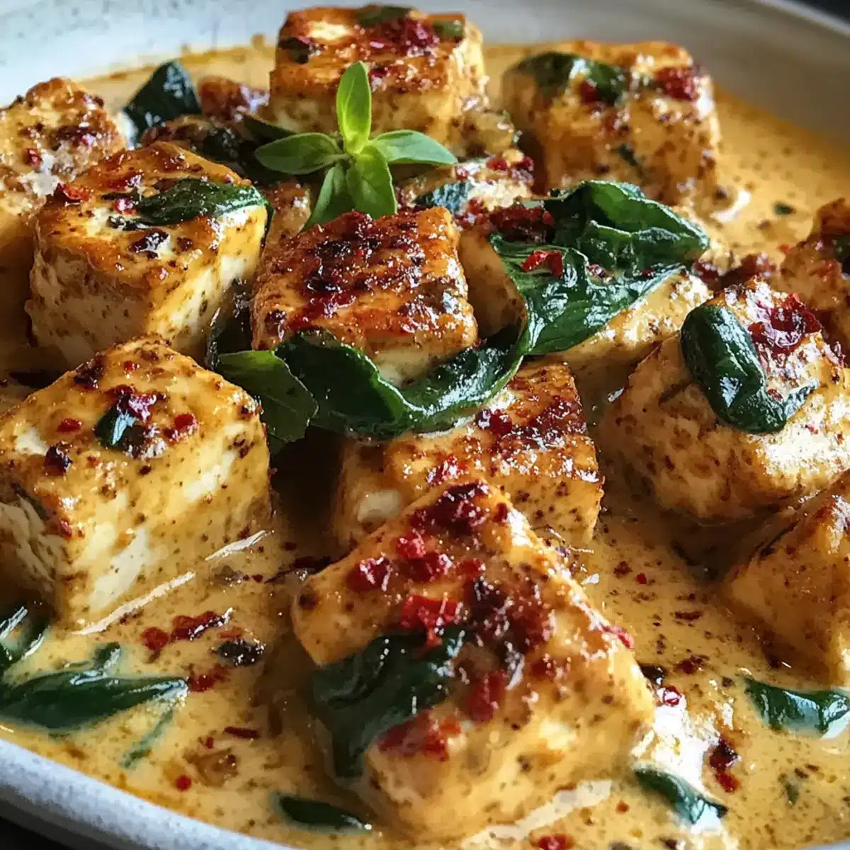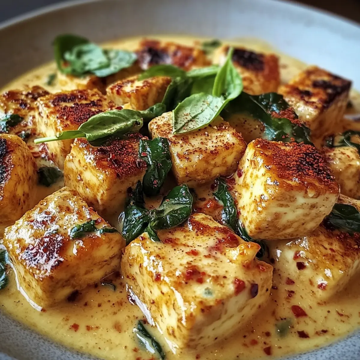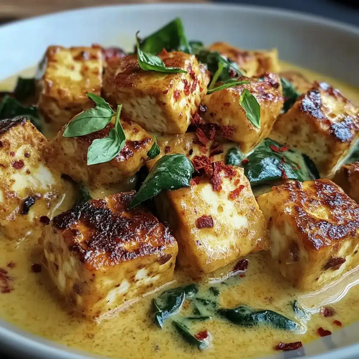 Cremiger Genuss: Dieses Rezept bietet eine unwiderstehliche Kombination aus cremigem Tofu und aromatischer Kokosmilchsauce, die deine Geschmacksknospen verwöhnen wird.