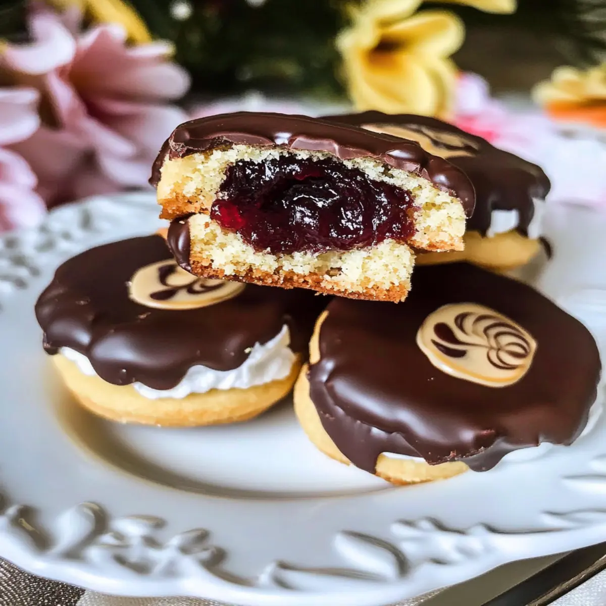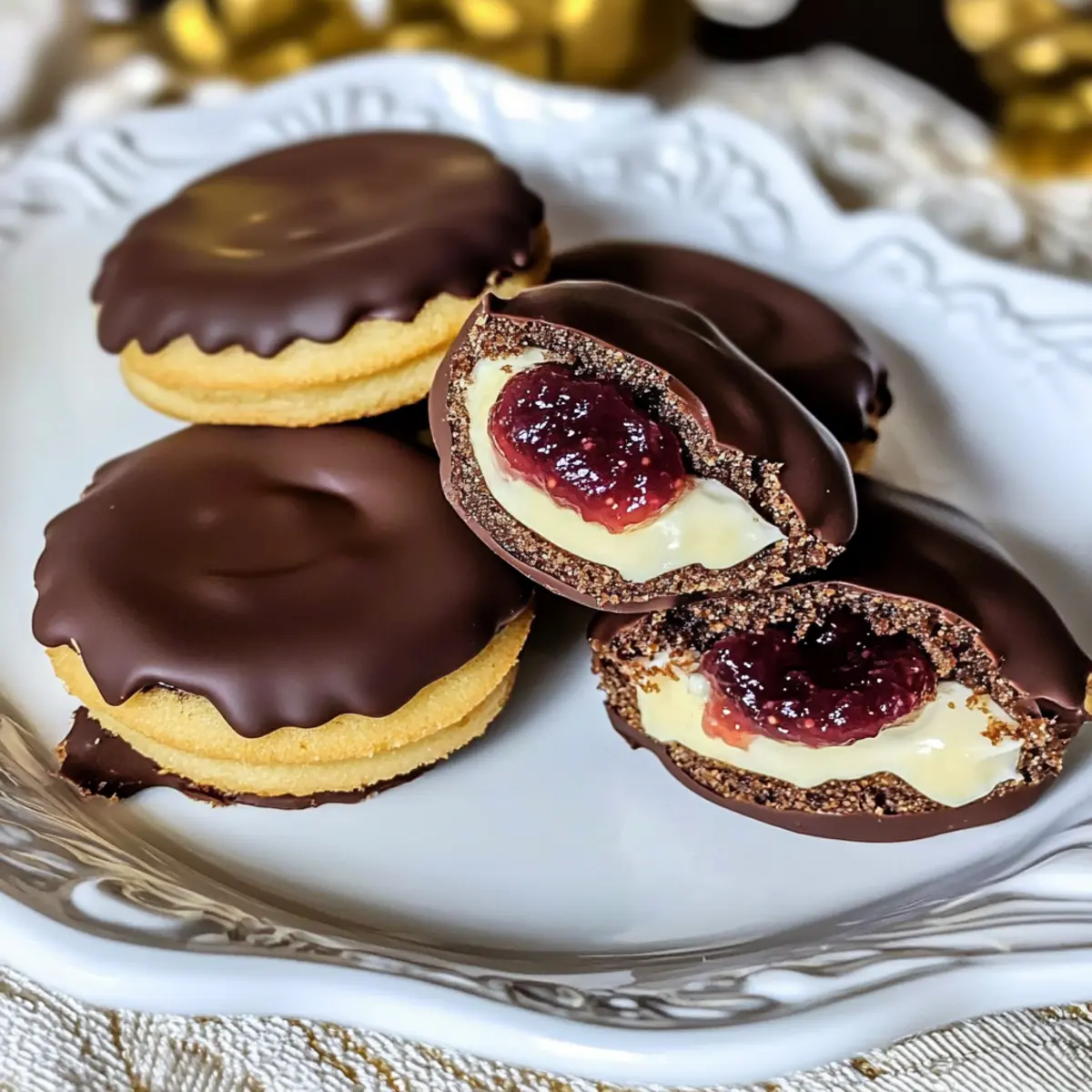 • Teigruhe beachten: Lassen Sie die Plätzchen nach dem Backen vollständig abkühlen, bevor Sie die Füllung und Schokolade hinzufügen, damit sie ihre Form behalten.