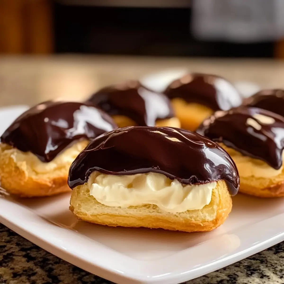 Eclair-Profiteroles mit köstlicher Cremefüllung
