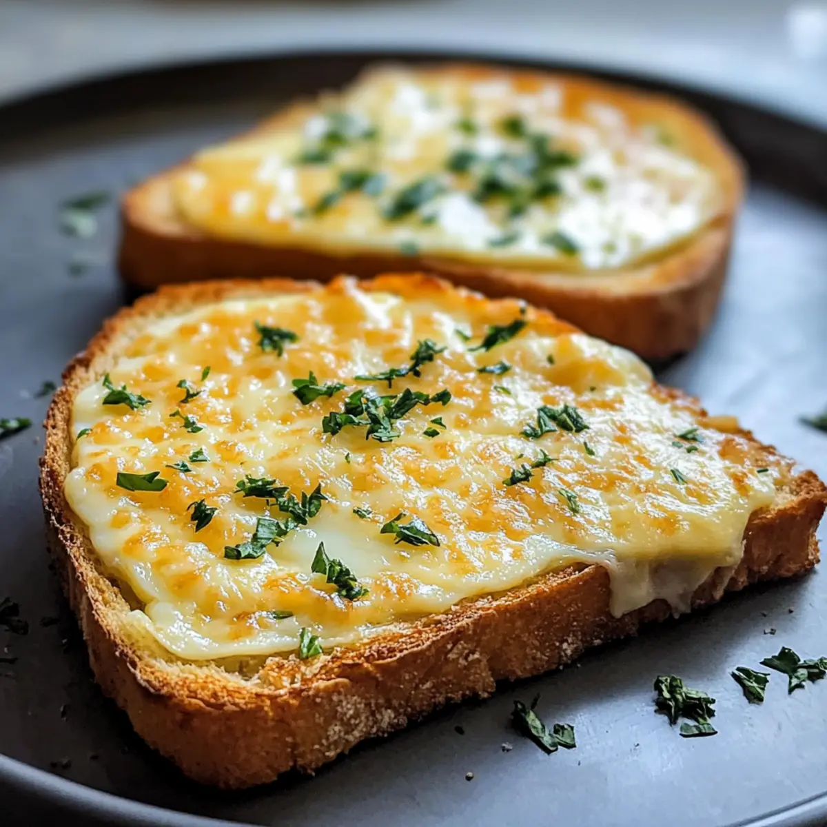 - Backe die Toasts für 10–12 Minuten im Ofen, bis der Käse goldbraun ist.