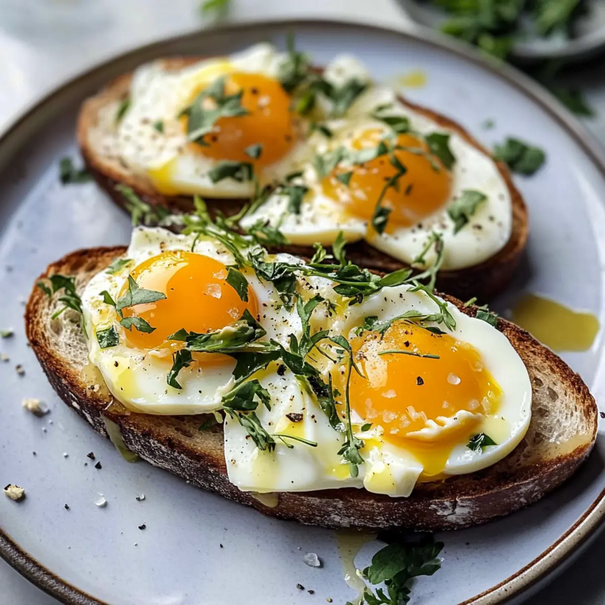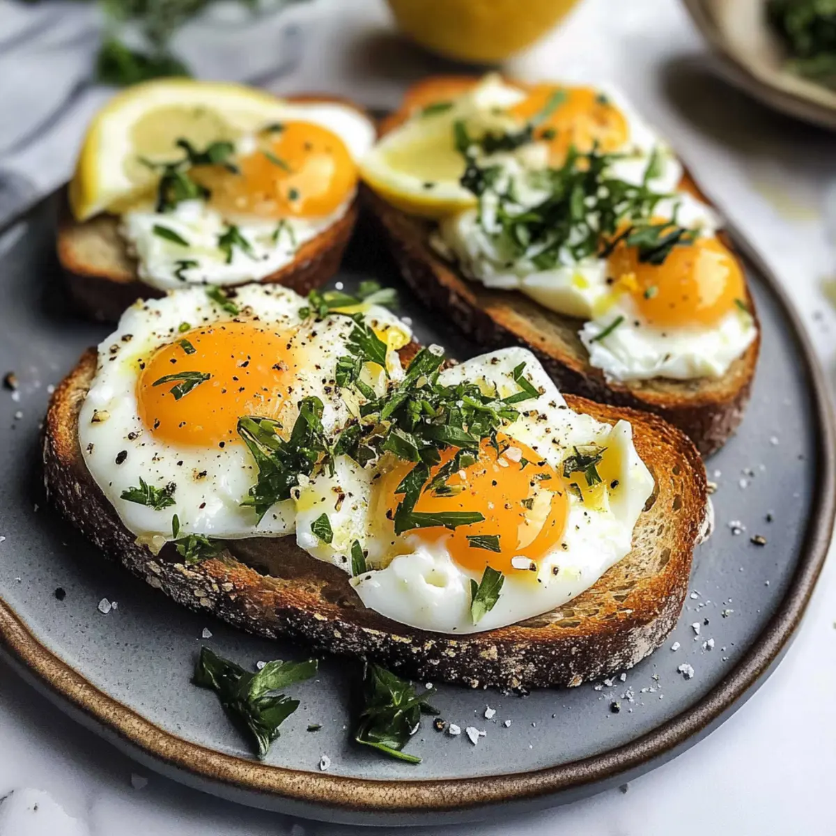 Simplicity und Genuss: Dieses Rezept erfordert nur minimale Kochkenntnisse und ist in weniger als 10 Minuten zubereitet. Köstlicher Geschmack: Die Kombination aus cremigen Eiern und frischem Brot sorgt für ein unvergleichliches Geschmackserlebnis. Vielseitige Toppings: Ob mit frischen Kräutern, sriracha oder geräuchertem Fisch – jedem ist der eigene Stil erlaubt! Perfekt für alle Anlässe: Ideal für ein schnelles Frühstück oder ein entspanntes Brunch mit Freunden. Zeitersparnis: Bereitet ihr die Mayonnaise-Mischung im Voraus vor, wird der Prozess noch schneller! Gönnt euch eine köstliche Auszeit mit diesem einfachen, aber luxuriösen Gericht!