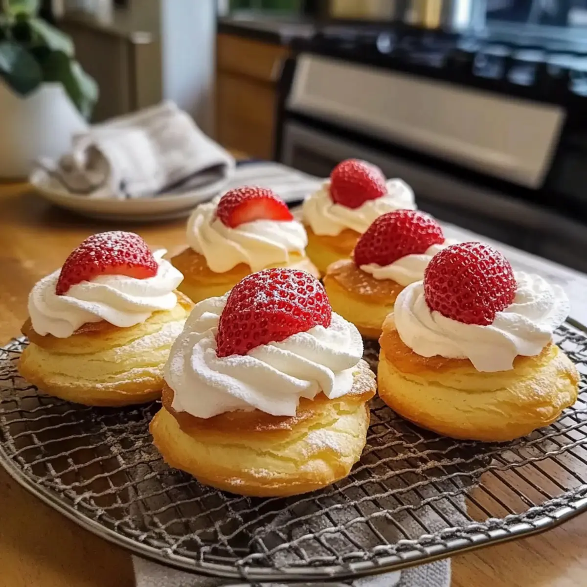 Erdbeer-Schlagsahne-Profiteroles sind ideal für die Vorausplanung! Du kannst die Choux-Pastete bis zu 24 Stunden im Voraus backen und in einem luftdichten Behälter aufbewahren, um die Frische zu bewahren. Die Füllung aus Schlagsahne lässt sich ebenfalls hervorragend vorbereiten – schlage sie und bewahre sie bis zu 3 Tage im Kühlschrank auf. Um Qualitätsverluste zu vermeiden, halte die Füllung und die Profiteroles bis kurz vor dem Servieren getrennt, damit die Teighülle knusprig bleibt. Wenn du bereit bist zu servieren, fülle die Profiteroles mit der Schlagsahne, füge Erdbeeren hinzu und bestäube sie mit Puderzucker für einen perfekten Abschluss. So sparst du Zeit und kannst dennoch frische, leckere Dessertgenüsse bieten!