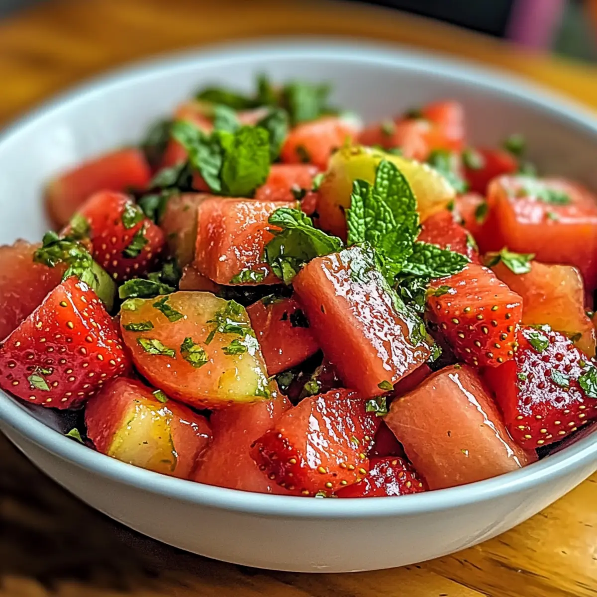 Als ich kürzlich an einem Sommertag in meinem Garten saß, umgeben von den süßen Düften frischer Früchte, fiel mir die Idee zu meinem Rezept für einen erfrischenden Erdbeere Wassermelone Salat mit Honig-Limetten-Dressing ein. Diese Kombination aus saftiger Wassermelone und süßen Erdbeeren ist nicht nur ein wahrer Genuss, sondern auch ein rettender Anker an heißen Tagen. Die einfache Zubereitung macht diesen Salat ideal für Picknicks und Grillpartys, während das leichte Dressing die natürliche Süße der Früchte perfekt ergänzt. Ein weiterer Pluspunkt? Dieser gesunde Sommer-Salat ist glutenfrei und wird sicherlich bei Gästen und Familie für Begeisterung sorgen. Wer kann bei so viel Frische und Geschmack schon widerstehen? Lassen Sie uns gemeinsam die perfekten Zutaten mischen und herausfinden, wie einfach es ist, diesen erfrischenden Salat zuzubereiten!