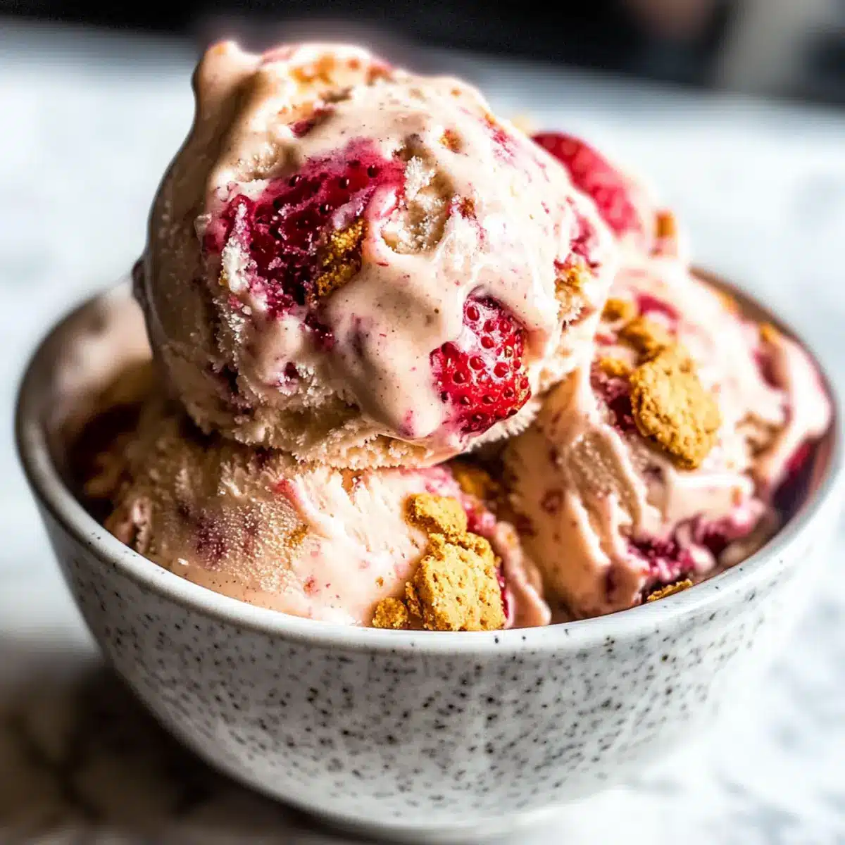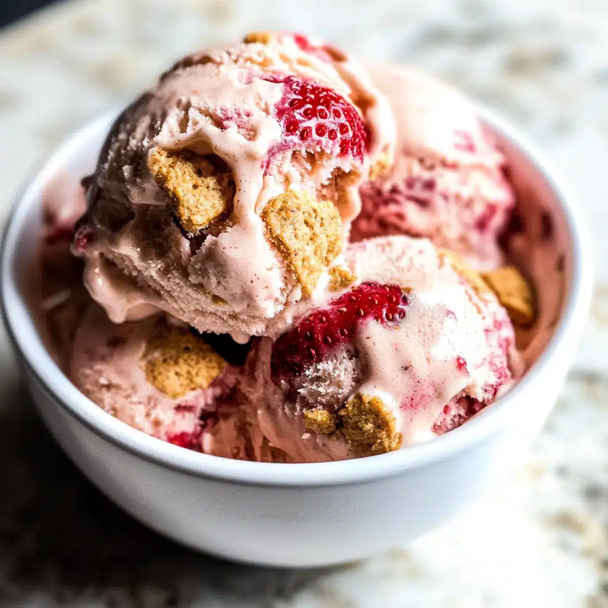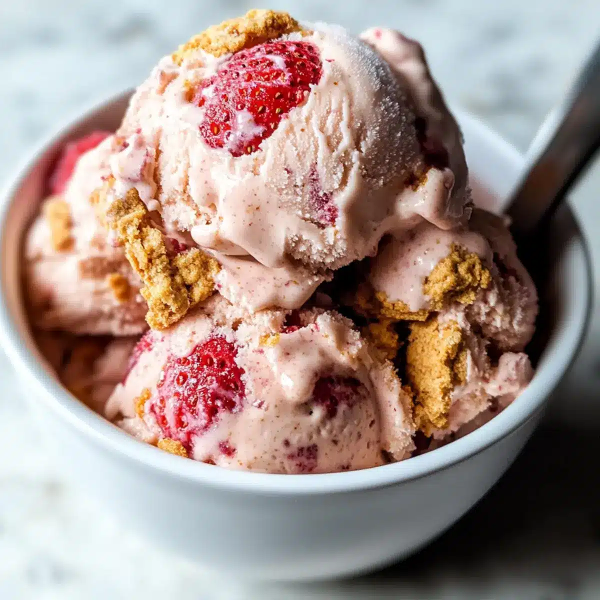 Das ist Ihre kreative Grundlage für ein erfrischendes und köstliches Erdbeerkäsekuchen Eis, das die warme Jahreszeit perfekt repräsentiert!
