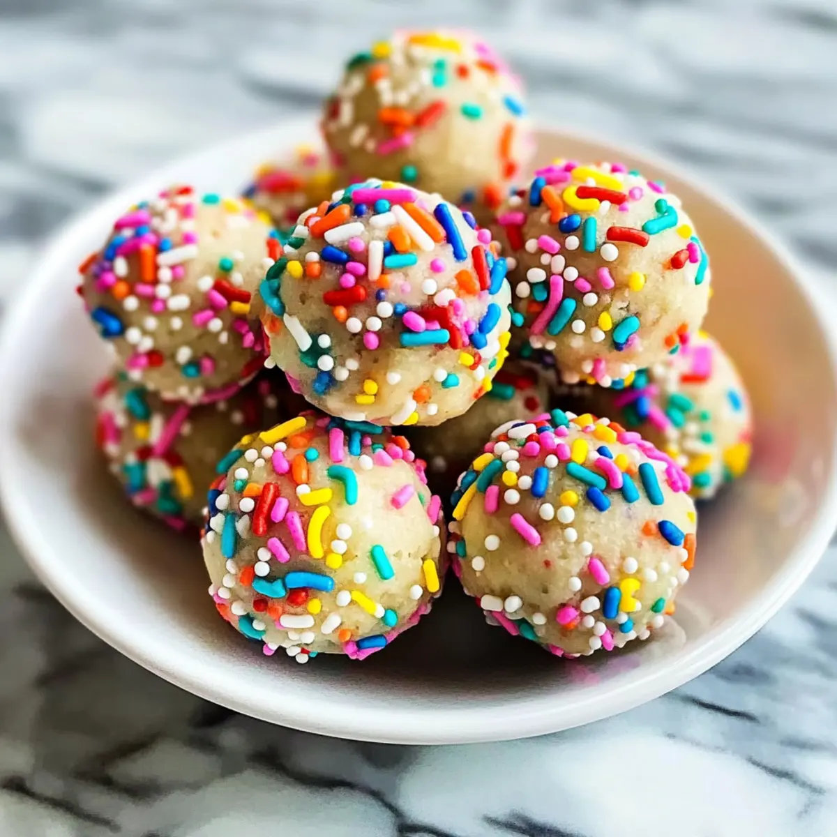 - Rolle jedes Bällchen in einer Schüssel mit bunten Streuseln, bis es rundum bedeckt ist.