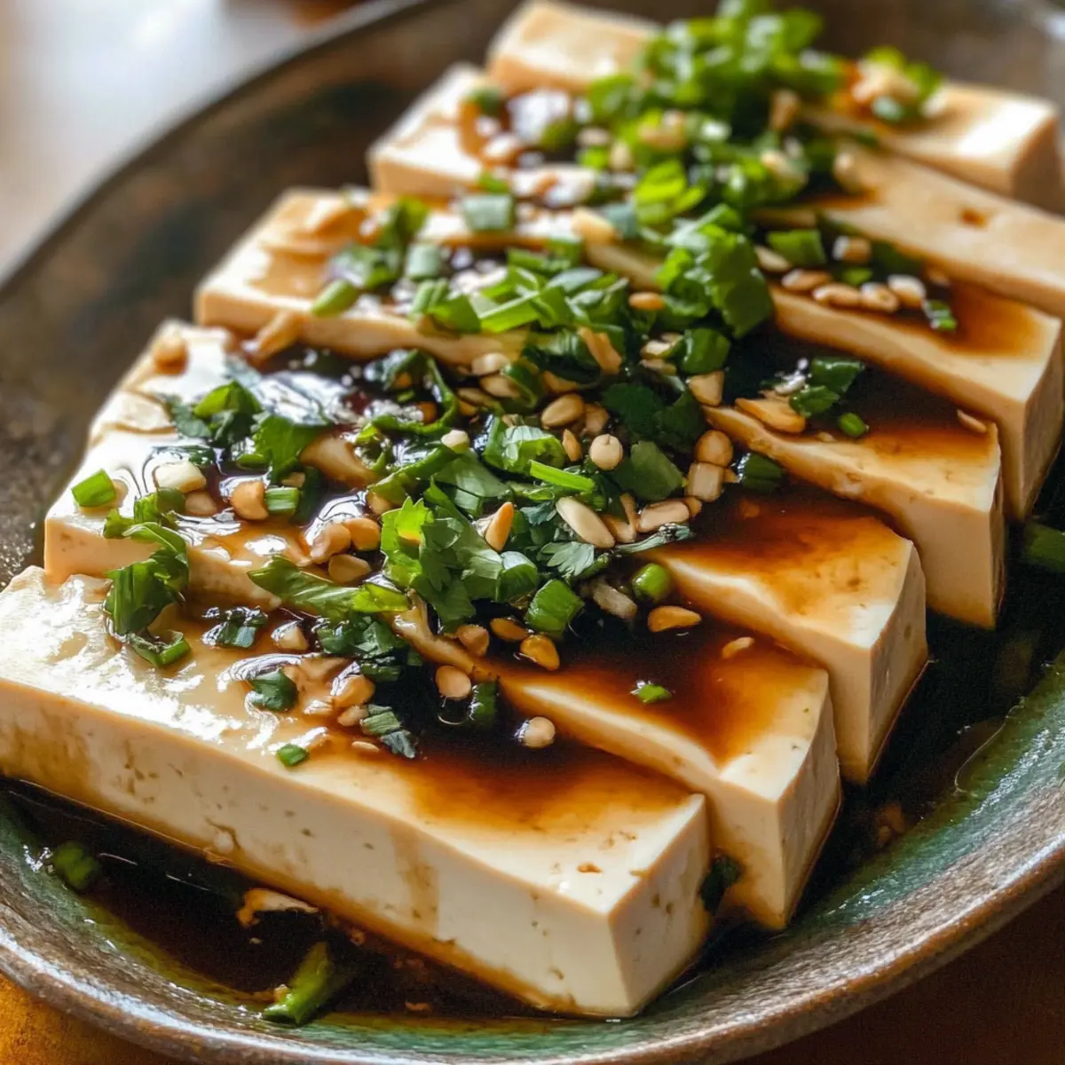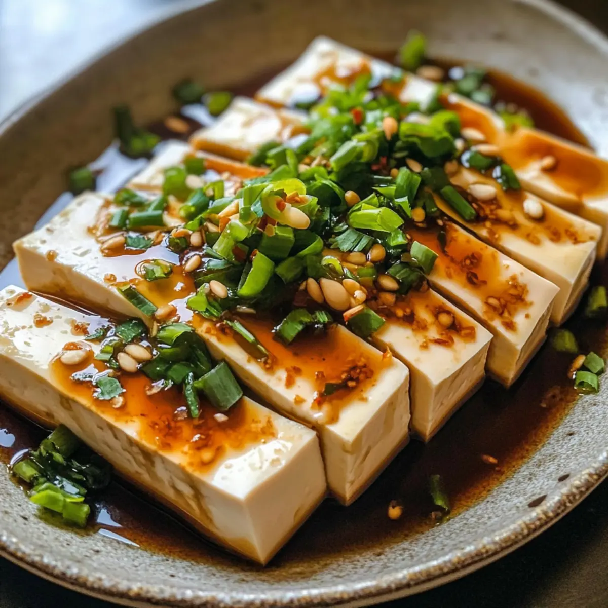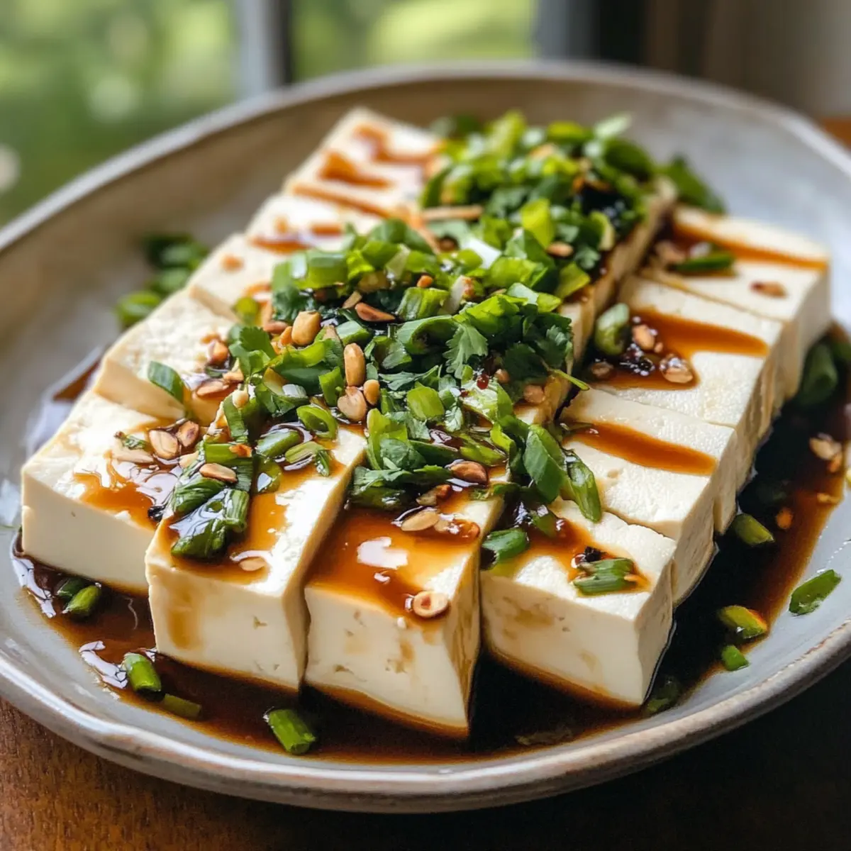 Nachdem der Tofu gedämpft ist, nehmen Sie die Schale vorsichtig aus dem Dampfgarer. Lassen Sie überschüssige Flüssigkeit abtropfen und gießen Sie die vorbereitete Soße gleichmäßig über den warmen Tofu. Garnieren Sie das Gericht mit frisch gehackten Frühlingszwiebeln oder Koriander und servieren Sie es heiß.
