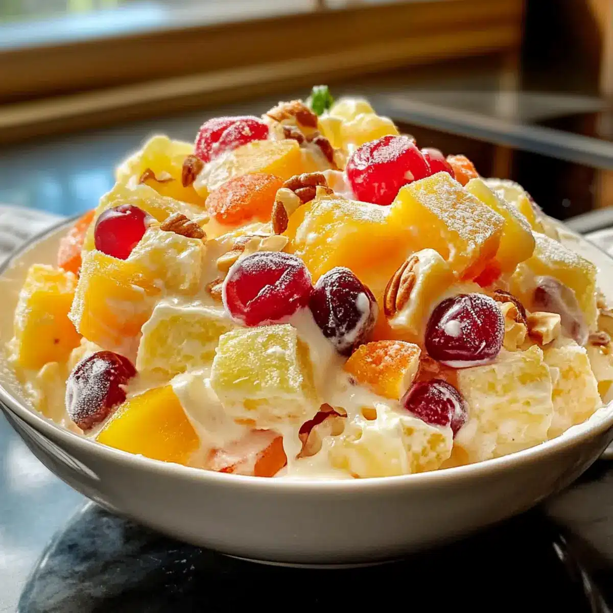 „Hast du schon einmal den Moment erlebt, in dem alles andere vergessen ist und der pure Genuss an erster Stelle steht?“ Der gefrorene Obstsalat bringt genau dieses Gefühl zurück! Dieses Rezept ist nicht nur eine erfrischende Hommage an vergangene Zeiten, sondern auch ein unkompliziertes, zuckerfreies Vergnügen, das für jeden Anlass perfekt geeignet ist. Egal, ob du bei einem Picknick, einer Gartenparty oder einem Brunch glänzen möchtest, dieser salatähnliche Dessertstar ist im Handumdrehen zubereitet und lässt sich vielfältig anpassen. Die Kombination aus cremiger Basis und fruchtiger Frische sorgt dafür, dass sich jeder Gaumen verwöhnt fühlt. Entdecke, wie du mit einfachen Zutaten und ein wenig Kreativität deine eigene Version des gefrorenen Obstsalats kreieren kannst! Bist du bereit, deine Gäste mit diesem nostalgischen Leckerbissen zu überraschen?