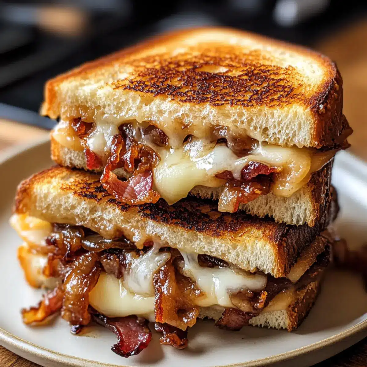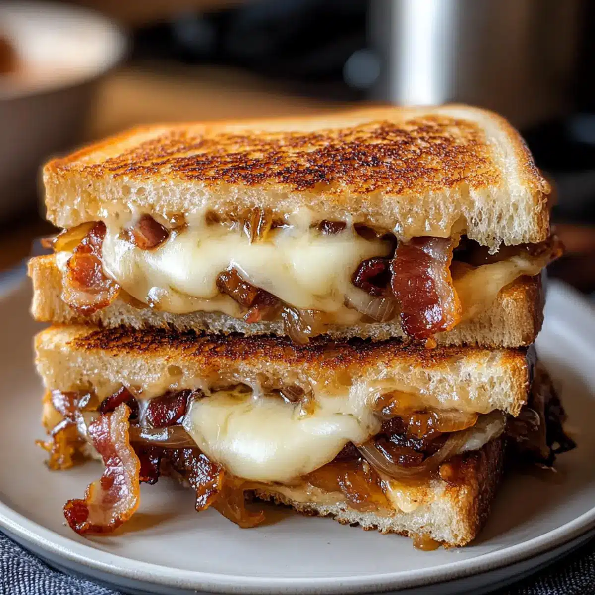 Gegrillte Käsesandwiches mit Speck und Zwiebeln