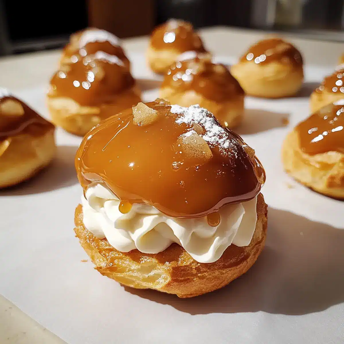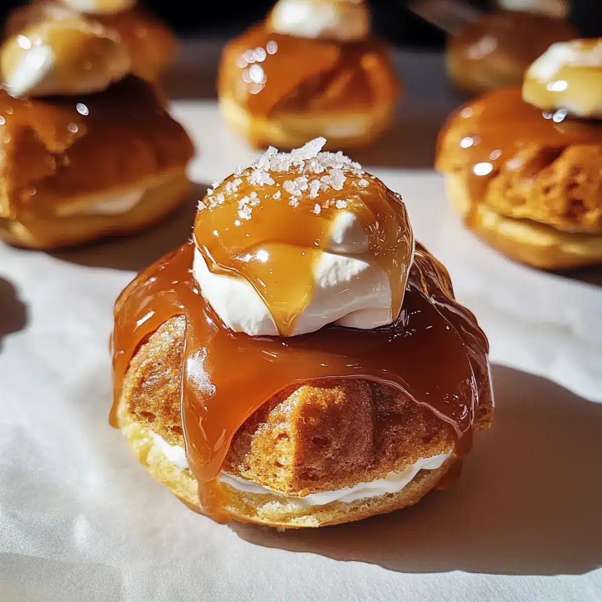 Entdecken Sie den vollen Genuss des gesalzenen Karamells in diesen köstlichen Profiteroles!