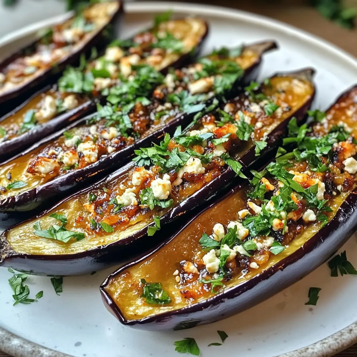 Legen Sie die gefüllten Auberginenhälften mit der Schnittfläche nach oben auf ein Backblech und backen Sie sie für 25-30 Minuten. Der Auflauf ist fertig, wenn die Auberginen zart und die Füllung goldbraun ist, was für eine köstliche Textur und Geschmack sorgt.