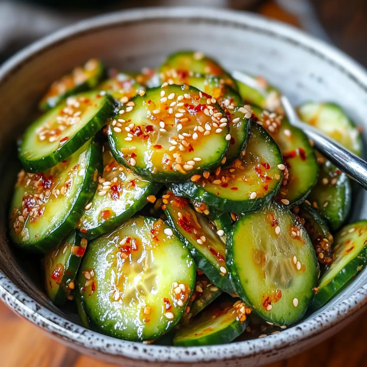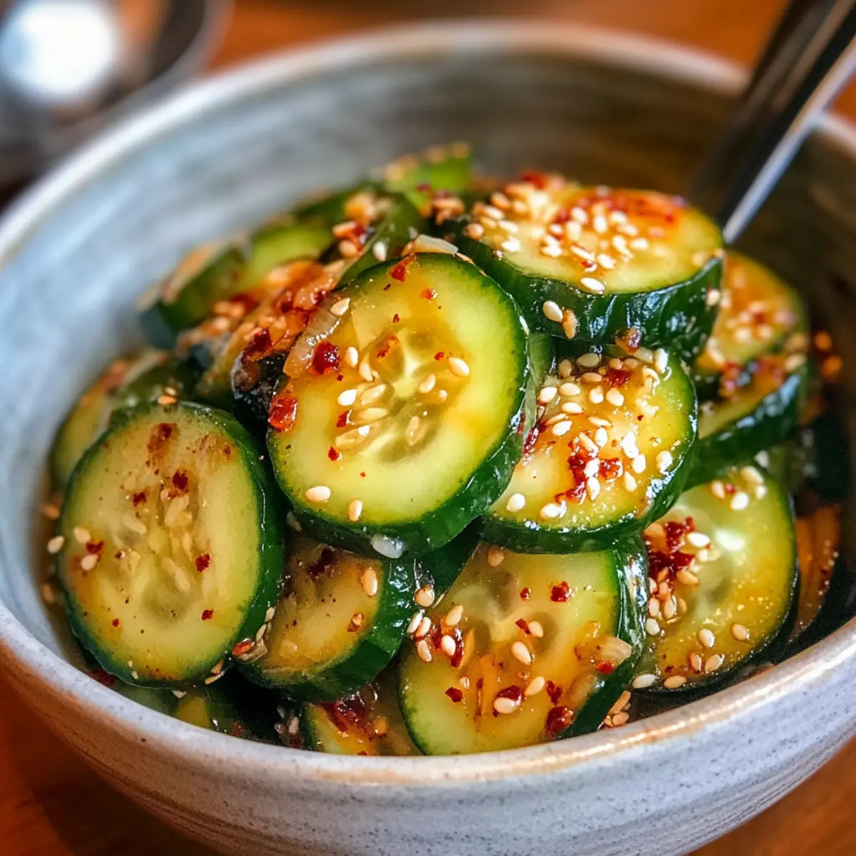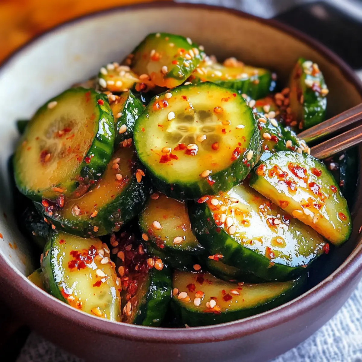 Frische ist der Schlüssel: Dieser Gurkensalat bringt eine erfrischende Note in jede Mahlzeit, ideal für warme Tage. Schnelle Zubereitung: In nur 15 Minuten seid ihr fertig – perfekt für vielbeschäftigte Köche! Gesunde Zutaten: Glutenfrei und vegan, er passt in jede Ernährung und erfüllt euer Bedürfnis nach leichten und schmackhaften Speisen. Vielseitig: Ob als Beilage zu Grillgerichten oder als eigenständige Mahlzeit, dieser Salat macht immer eine gute Figur. Einfach variierbar: Ihr könnt Zutaten anpassen, um eure eigenen Geschmacksvorlieben zu treffen und den Salat nach Belieben umzuändern. Lasst euch inspirieren und entdeckt auch meine anderen köstlichen Rezeptideen, wie koreanische Banchan für eine vollständige Erfahrung!