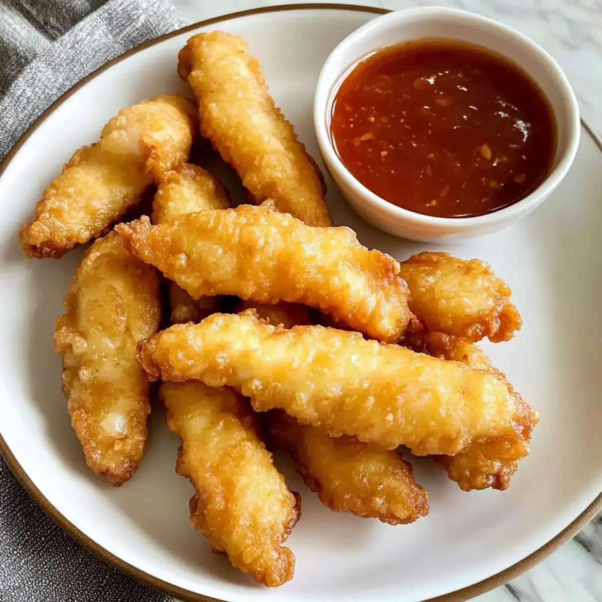 - Zitronenfrische: Geben Sie etwas Zitronensaft in den Teig für eine erfrischende Note, die perfekt zu den knusprigen Hähnchenstreifen passt.