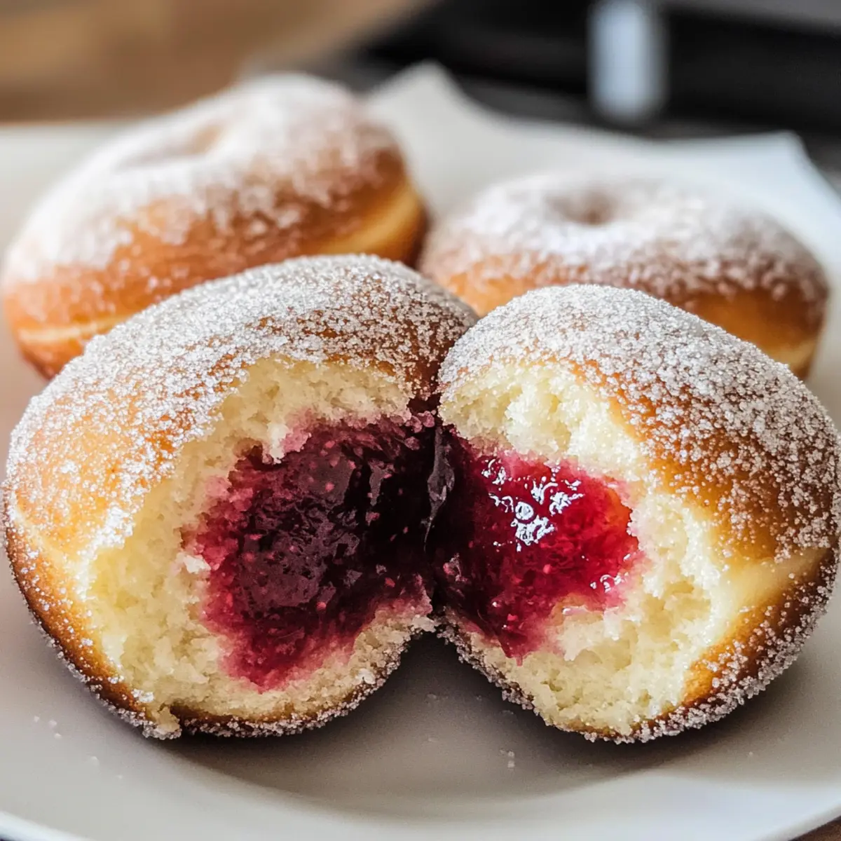 Einfachheit, Die Zubereitung dieser Himbeerdoughnuts ist kinderleicht und erfordert nur grundlegende Backkenntnisse. Reichhaltiger Geschmack, Die Kombination aus flaumigem Teig und fruchtiger Himbeermarmelade sorgt für einen unvergesslichen Genuss. Vielseitigkeit, Du kannst frische oder gefrorene Himbeeren verwenden und sogar verschiedene Marmeladensorten ausprobieren. Perfekte Textur, Außen goldbraun und knusprig, innen zart und fluffig – diese Doughnuts sind ein Traum! Publikumsfavorit, Ob beim nächsten Brunch oder einem gemütlichen Nachmittag, diese Leckerei bringt garantiert alle zum Schmelzen. Bereite sie schnell vor und verwandle jeden Moment in etwas Besonderes!