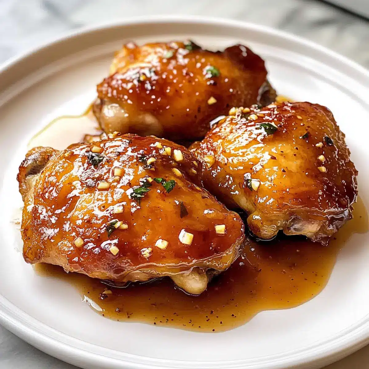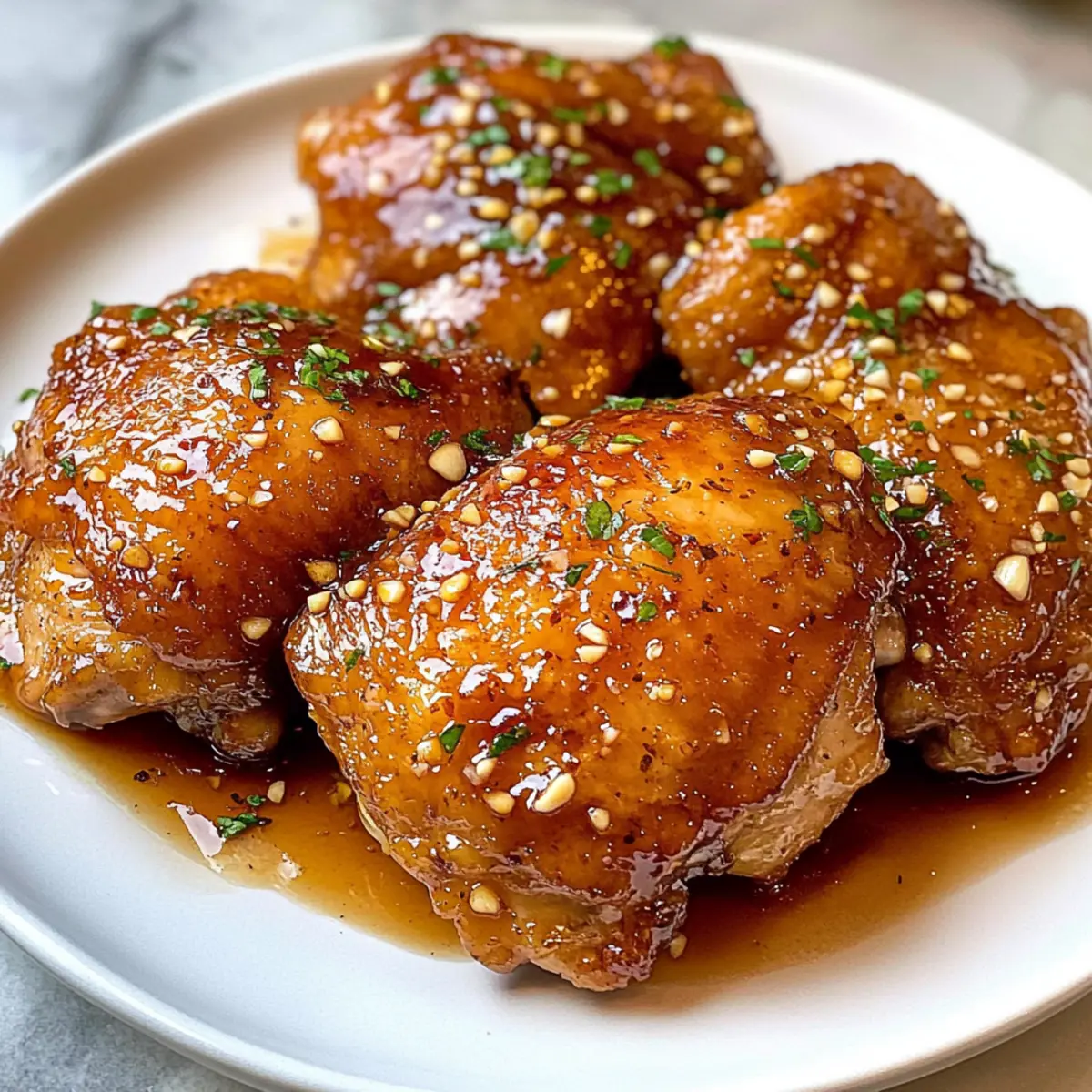 Sofort servieren, indem du die Hähnchenschenkel auf Verzehrplatten anrichtest und mit der köstlichen Honig-Knoblauch-Glasur überziehst. Du kannst das Gericht mit gedämpftem Reis oder gedämpften Gemüse servieren, um eine perfekte Mahlzeit zu kreieren.
