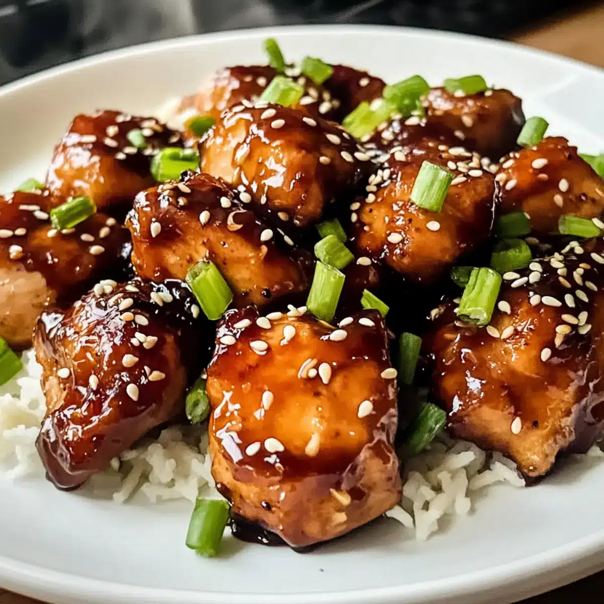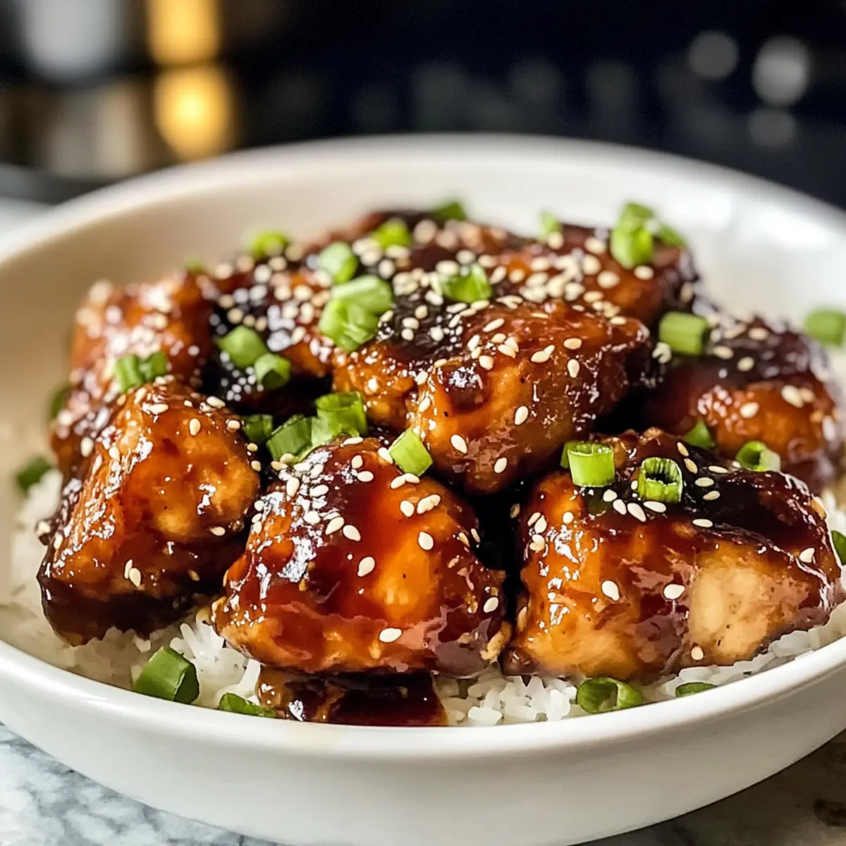 Die zarte Textur des Reis kombiniert sich wunderbar mit der süßen, klebrigen Sauce und sorgt für ein harmonisches Geschmackserlebnis. -