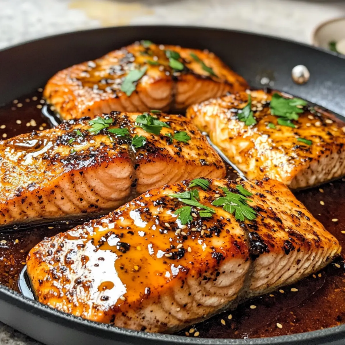 Das samtige Püree ergänzt die knusprige Textur des Lachs perfekt und bietet einen beruhigenden Kontrast zur würzigen Honigsauce. Eine warme Umarmung auf dem Teller! -