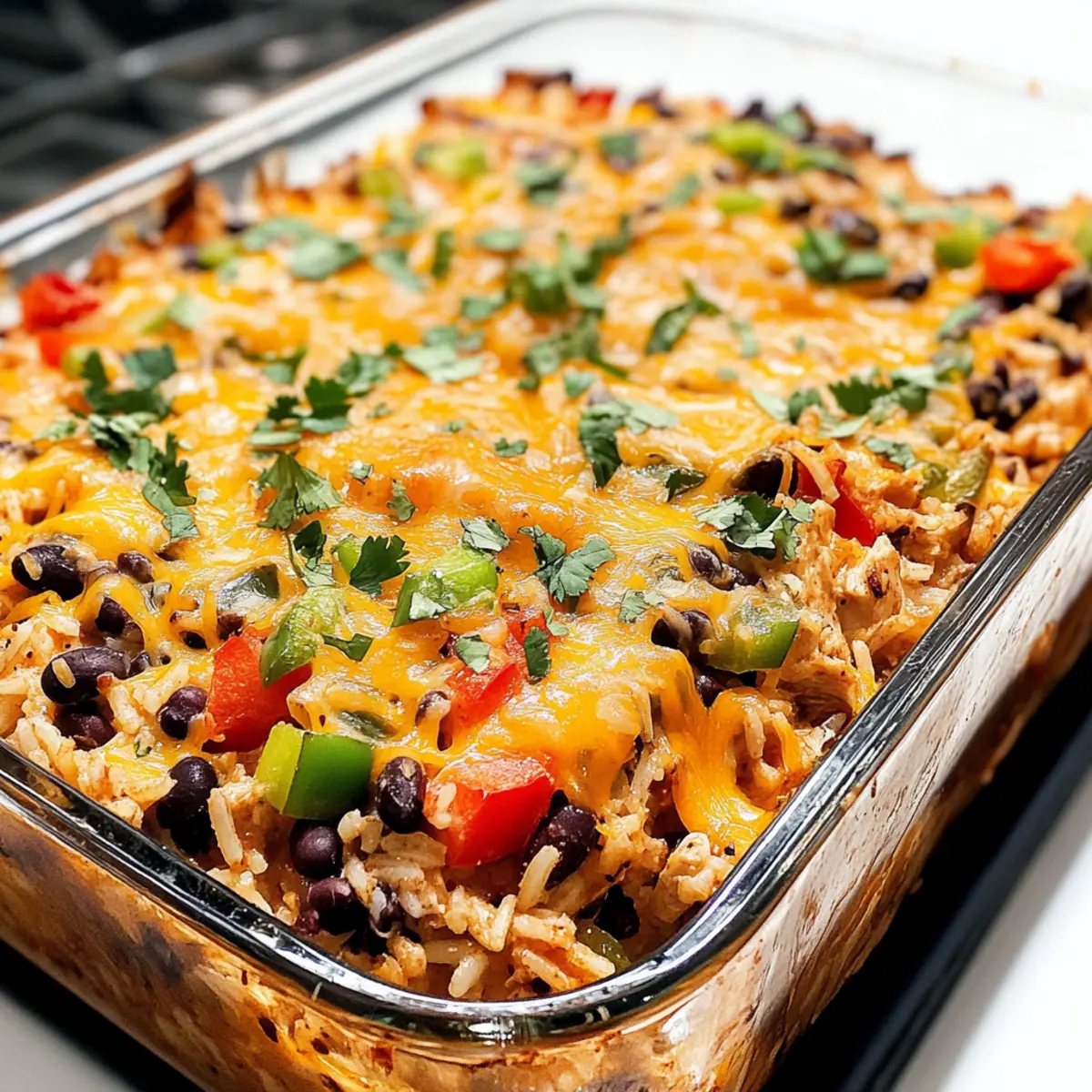 Nach der Backzeit entfernen Sie die Folie und streuen den geriebenen Monterey Jack Käse gleichmäßig über die Oberseite des Auflaufs. Stellen Sie die Form zurück in den Ofen für weitere 5–10 Minuten, bis der Käse geschmolzen und leicht golden ist. Dieser Schritt sorgt für die köstliche Kruste, die wir an Burrito Aufläufen lieben.