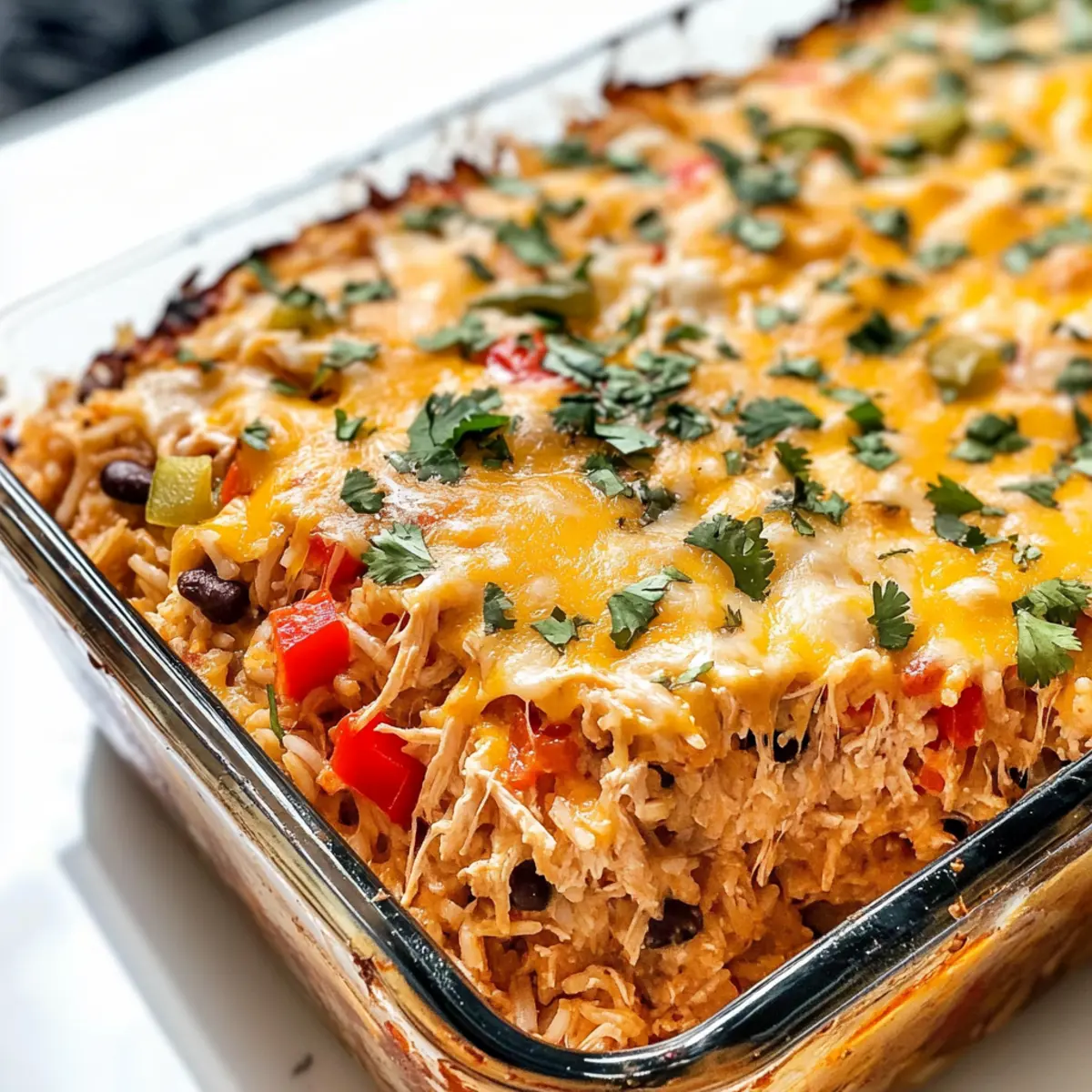 Vegetarisch: Ersetze das Hühnchen durch eine Mischung aus zusätzlichen Bohnen und Gemüse wie Zucchini oder Paprika für eine schmackhafte, fleischlose Version. Das gibt dem Auflauf eine ganz neue Dimension!