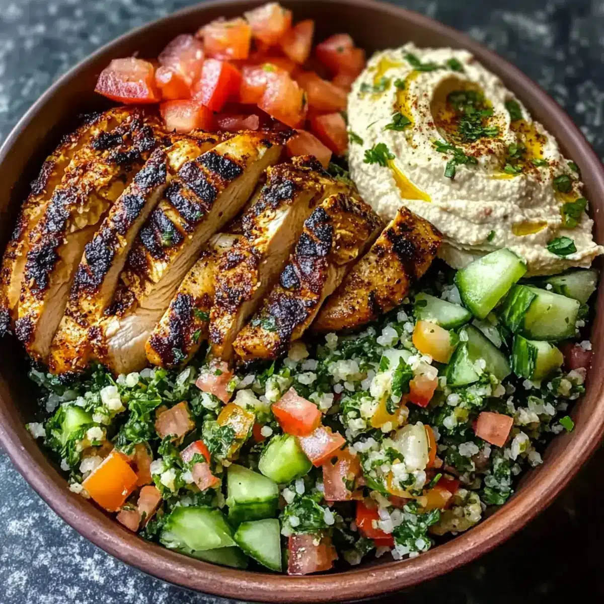Hühnchen Shawarma Schüssel mit frischem Tabbouleh