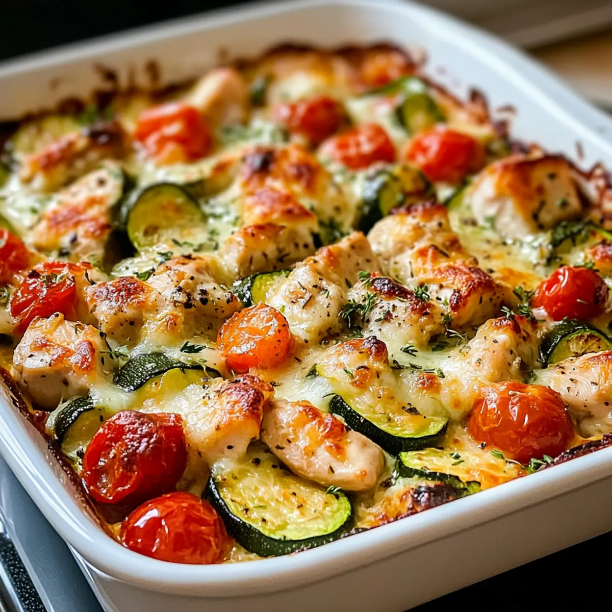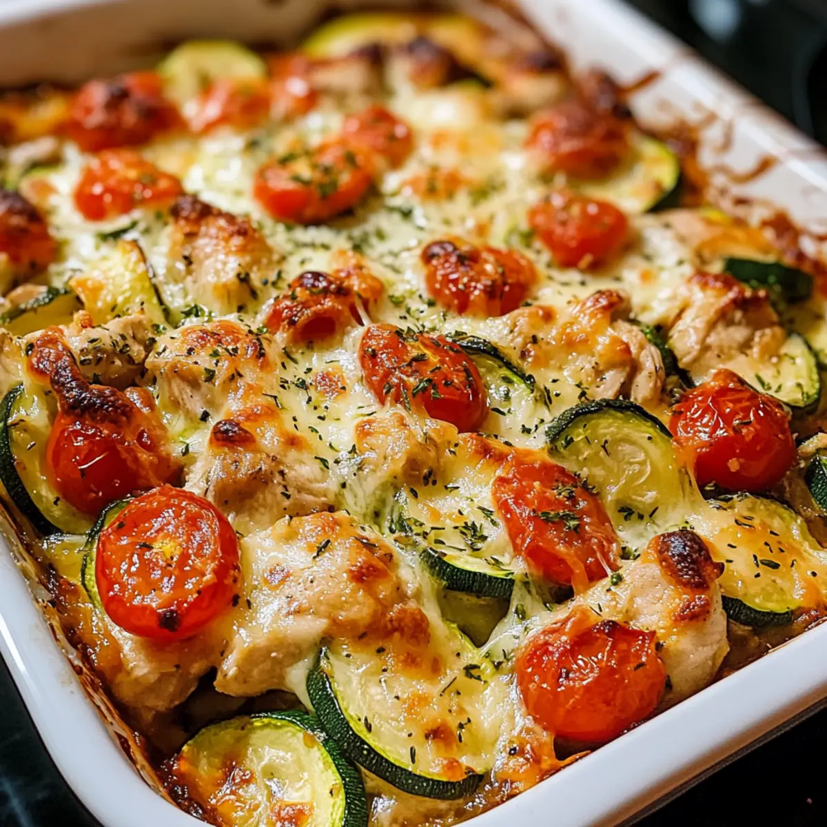 Köstliche Aromen: Die Kombination aus Hühnchen, Zucchini und sonnenverwöhnten Kirschtomaten wird deine Geschmacksnerven verzaubern und einen Hauch von Mittelmeer in deine Küche bringen.