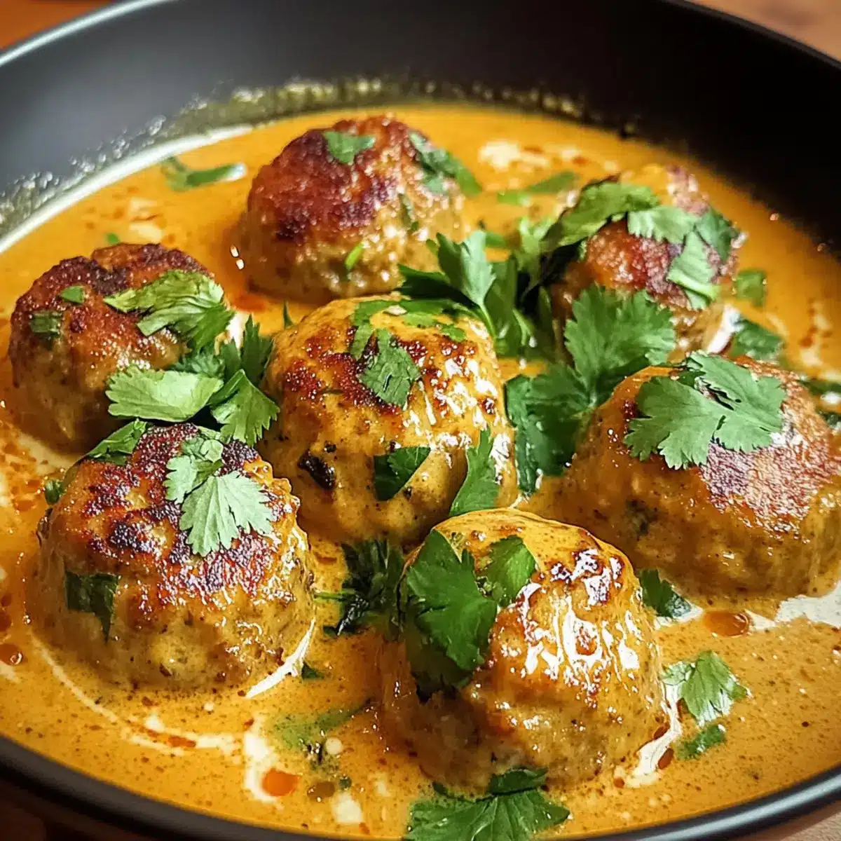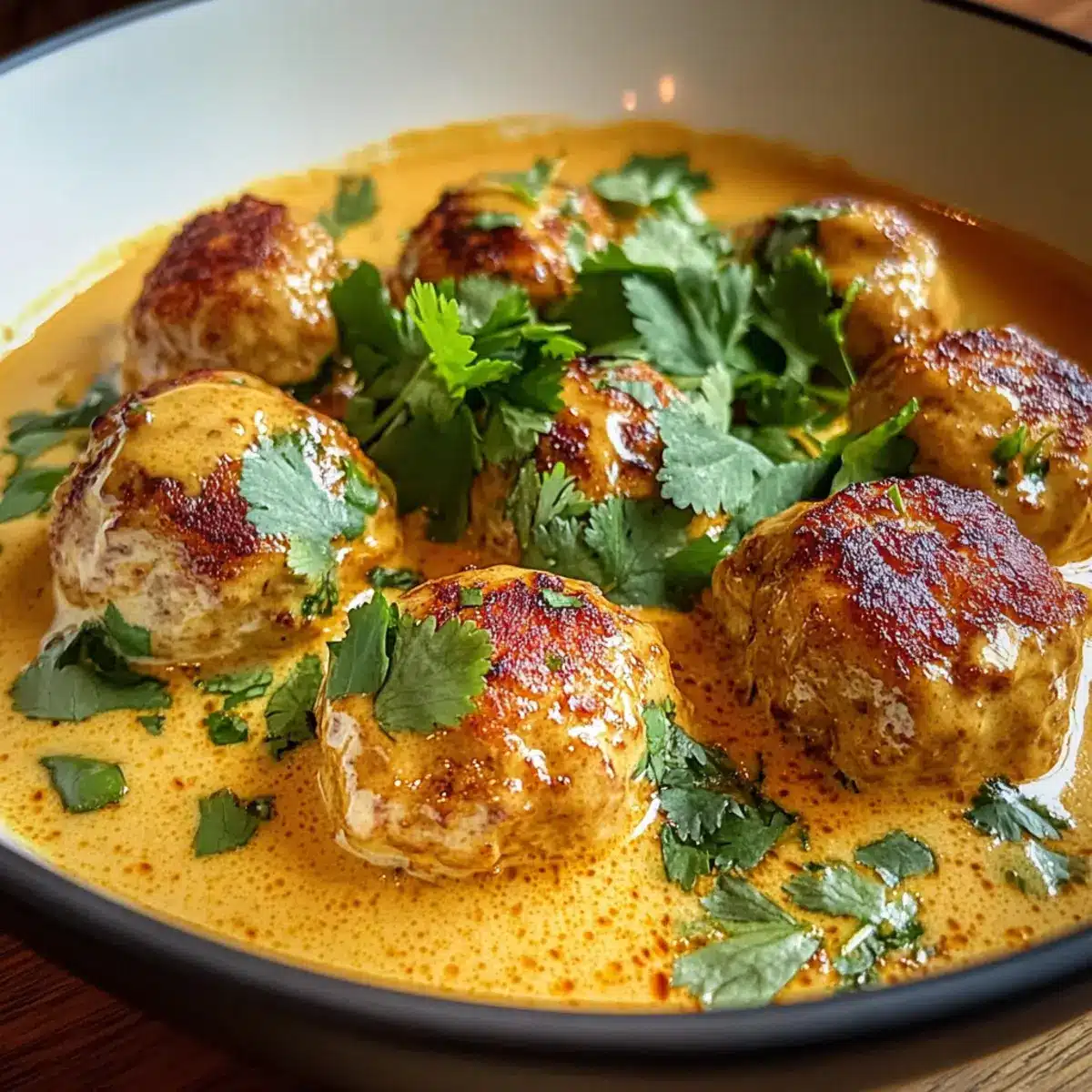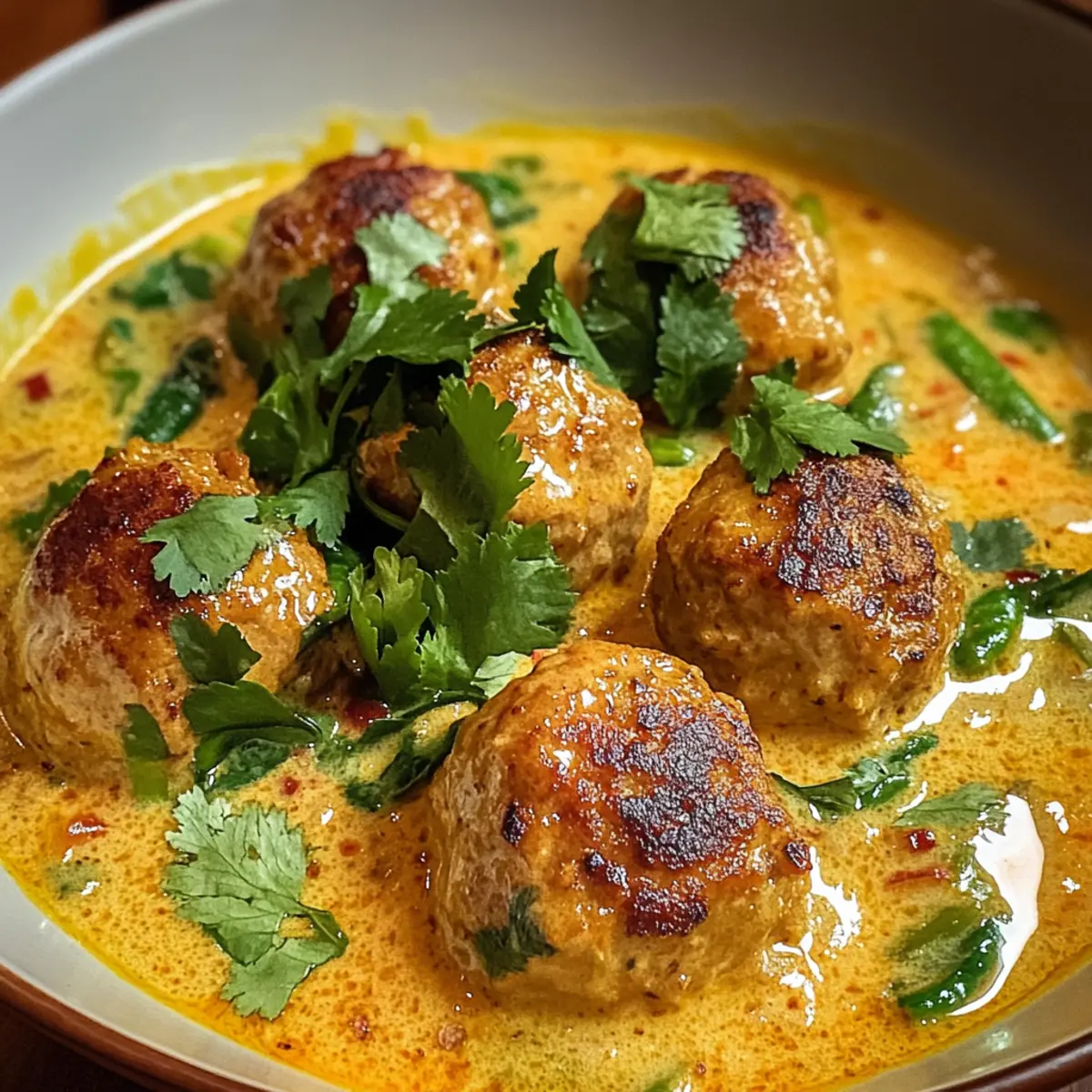 Hühnchenfrikadellen in cremiger Kokos-Curry-Sauce