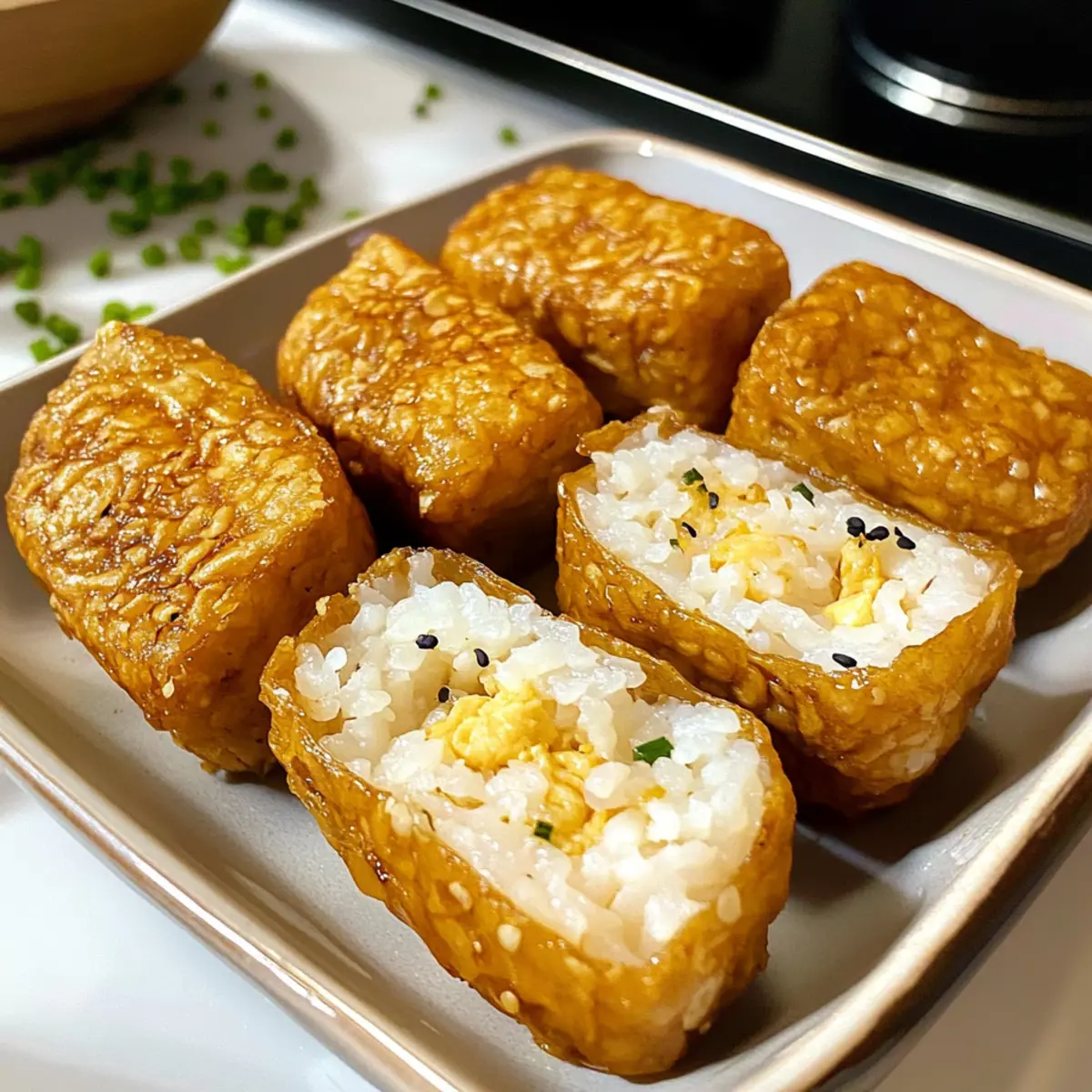 - Knusprig: Streue geröstete Sesamsamen oder gehackte Nüsse über die gefüllten Inari Sushi für zusätzlichen Crunch und ein tolles Aroma. Diese Variation ist perfekt, um unterschiedliche Texturen zu bieten.