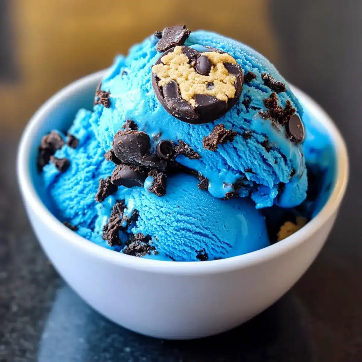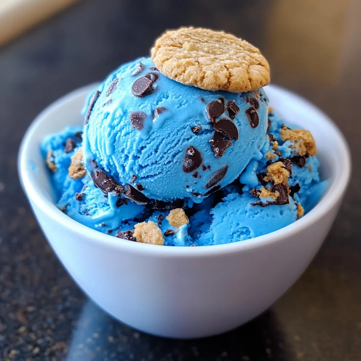 Bunte Freude, die begeistert: Die auffällige blaue Farbe und die knusprigen Keksstückchen machen das Eis zum perfekten Highlight auf jeder Feier.