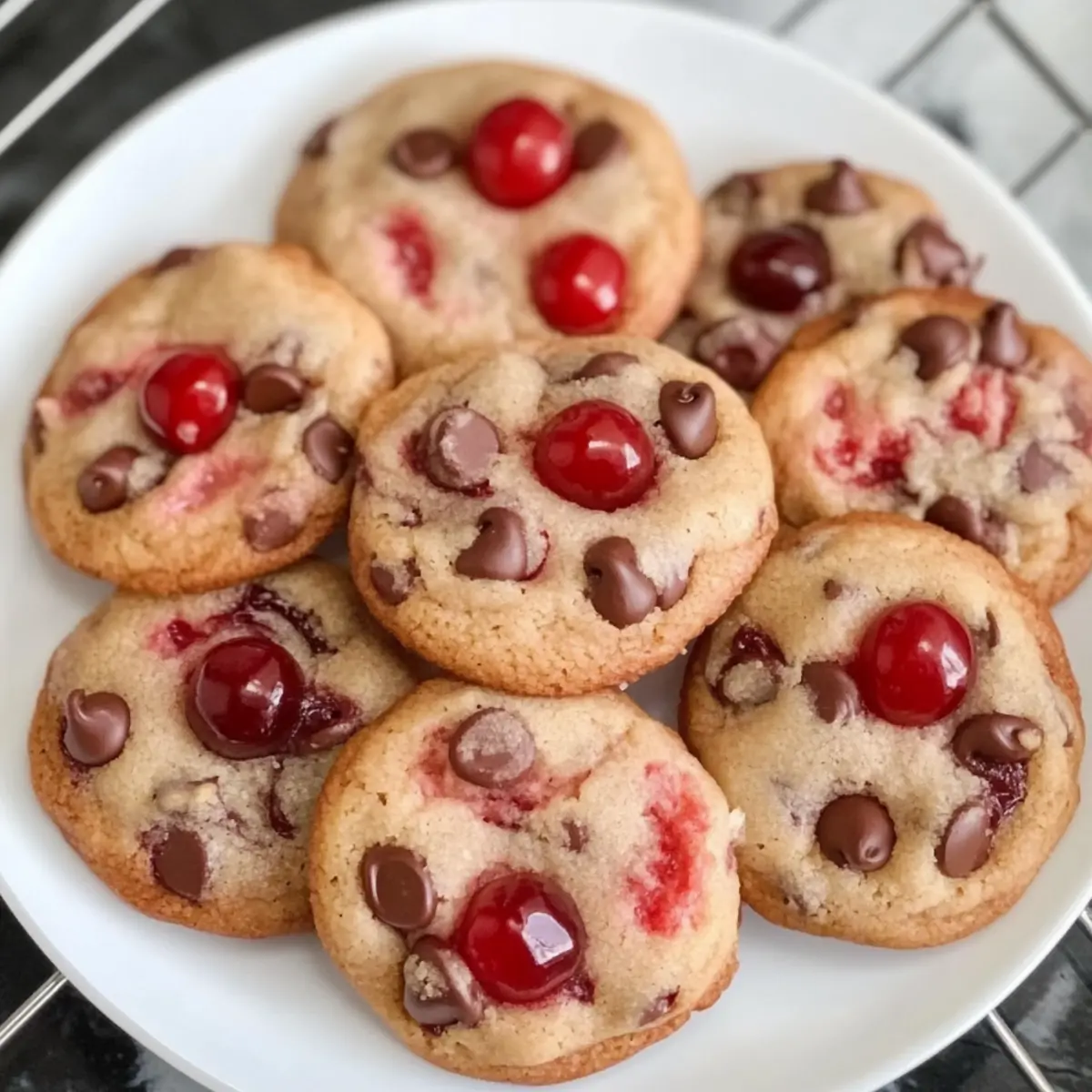 Backen Sie die Kirschschokoladenstückchen 12-13 Minuten lang oder bis die Ränder leicht goldbraun sind. Beobachten Sie die Kekse, um sicherzustellen, dass sie nicht zu lange im Ofen bleiben. Sind sie fertig, duften sie himmlisch und sind perfekt für Ihre festive Freude.