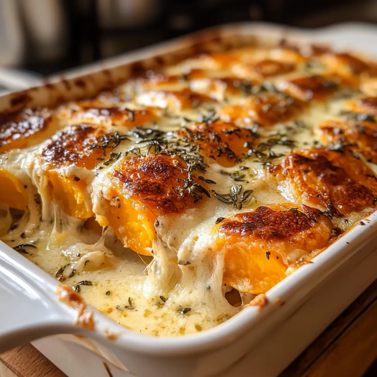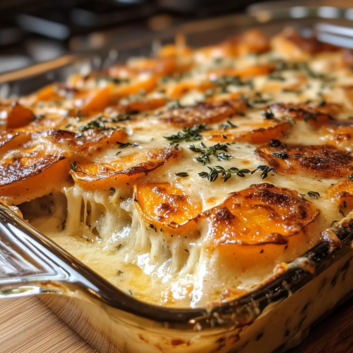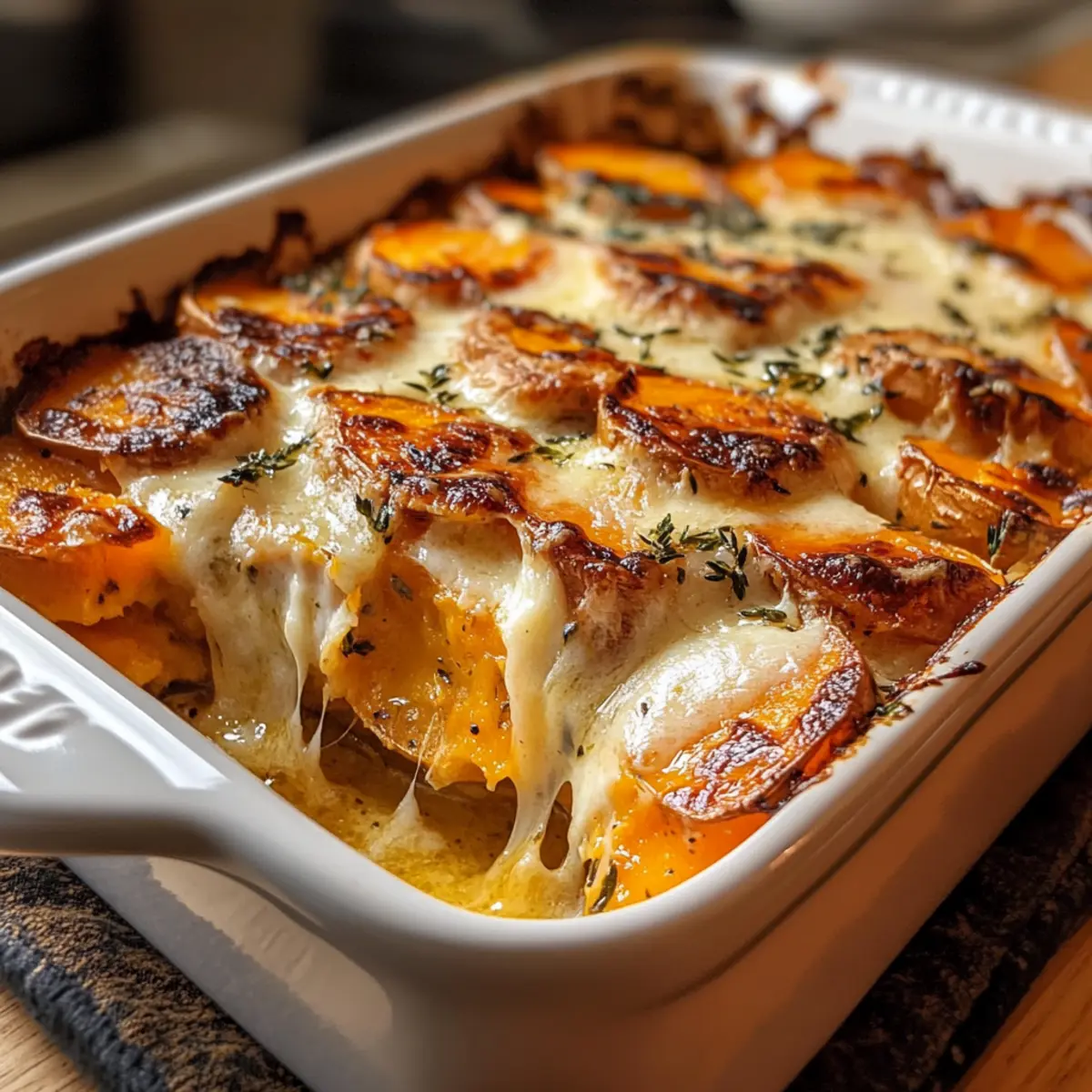 Knoblauch überbackene Süßkartoffeln mit cremiger Sauce