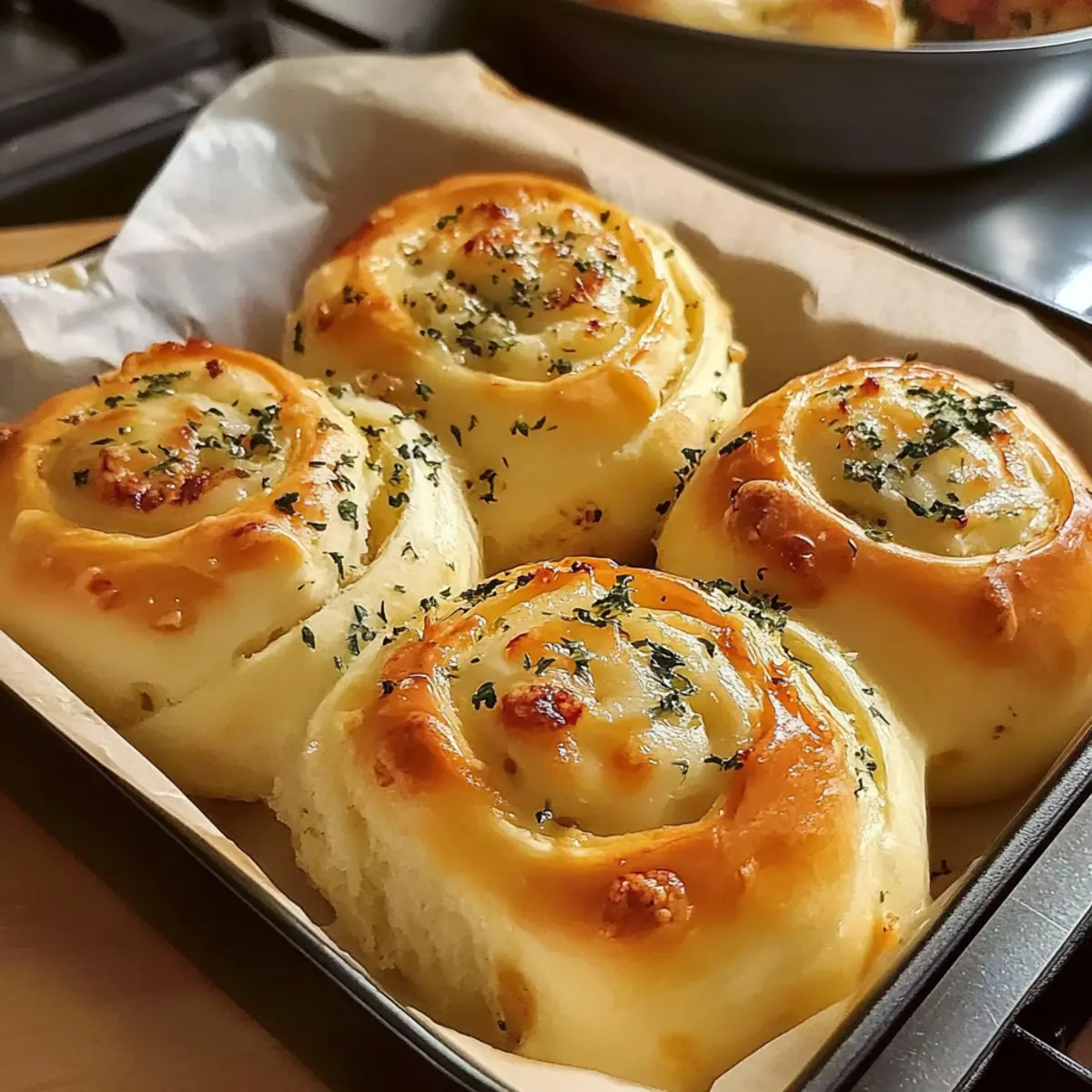 Knoblauchbrötchen - Weiche Käse-Knoblauch-Rollen